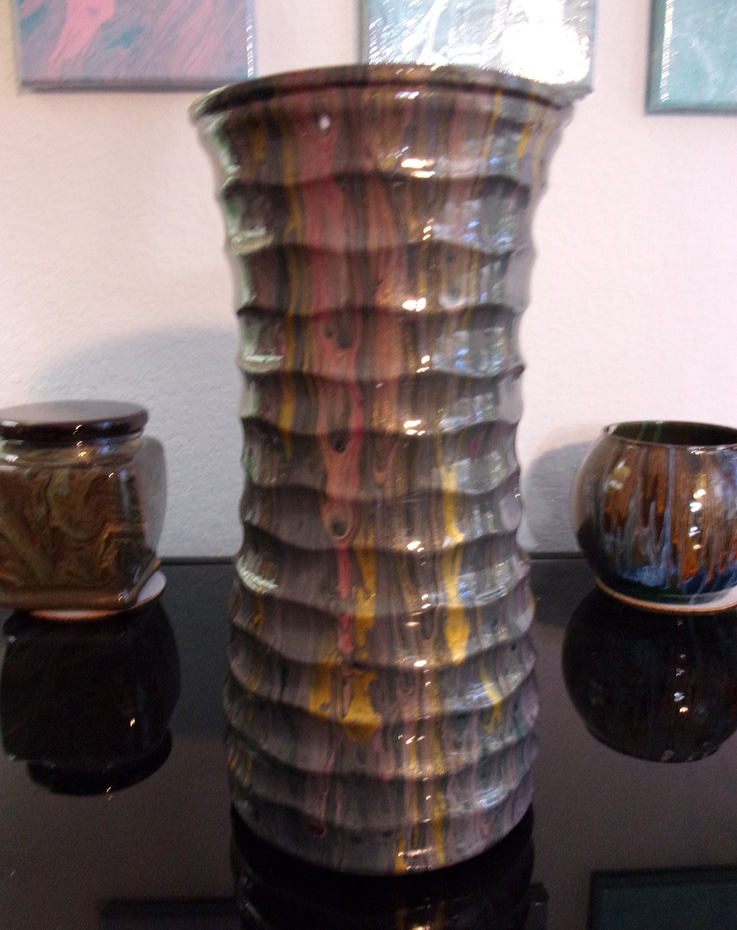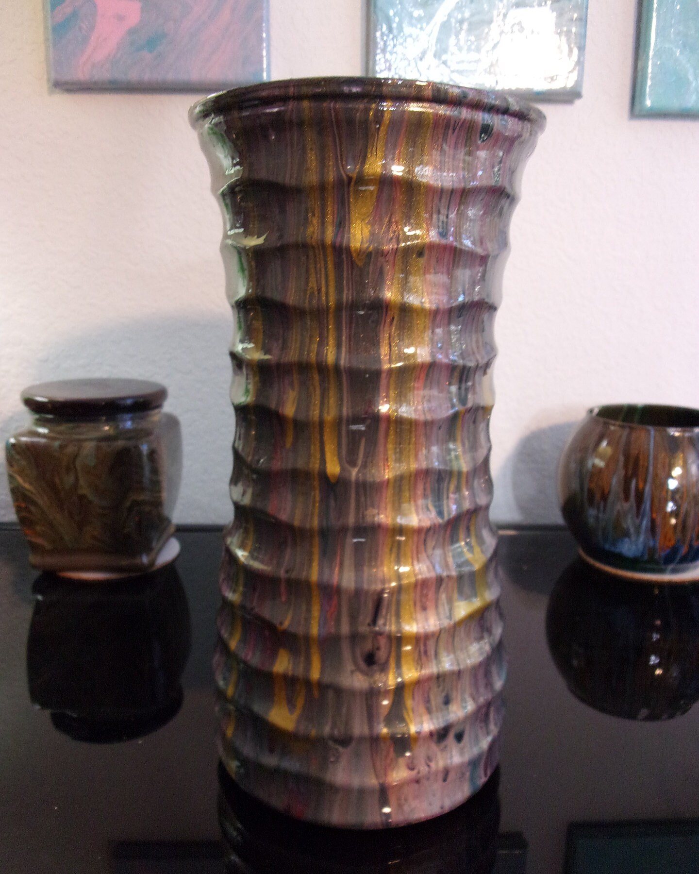 Beautiful one-of-a-kind 9.5"x 4.5" glass flower vase