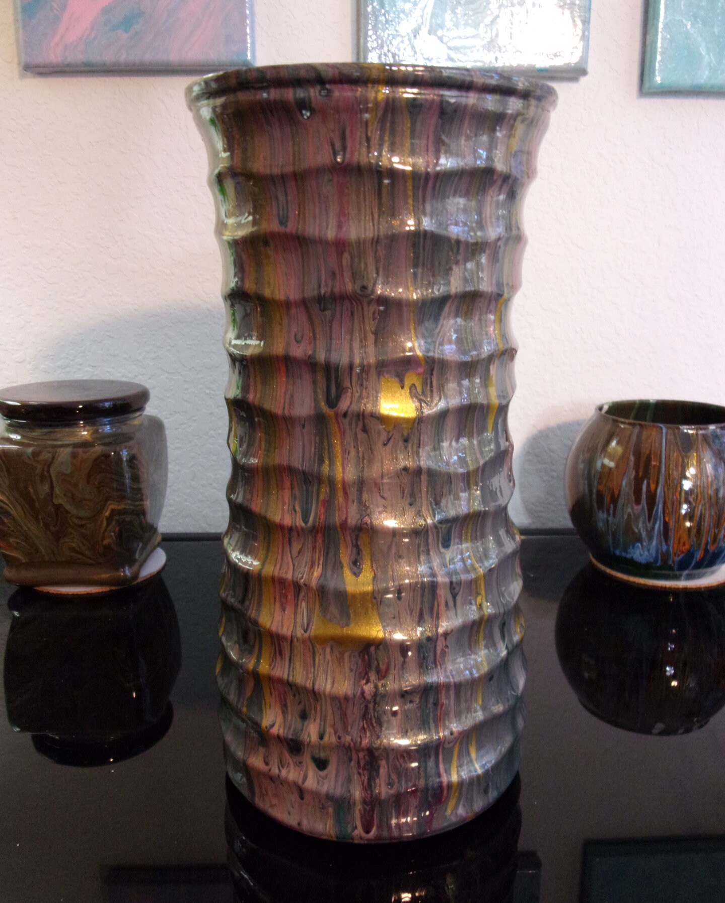Beautiful Resin Pour Flower Vase - Red & Gold Glitter