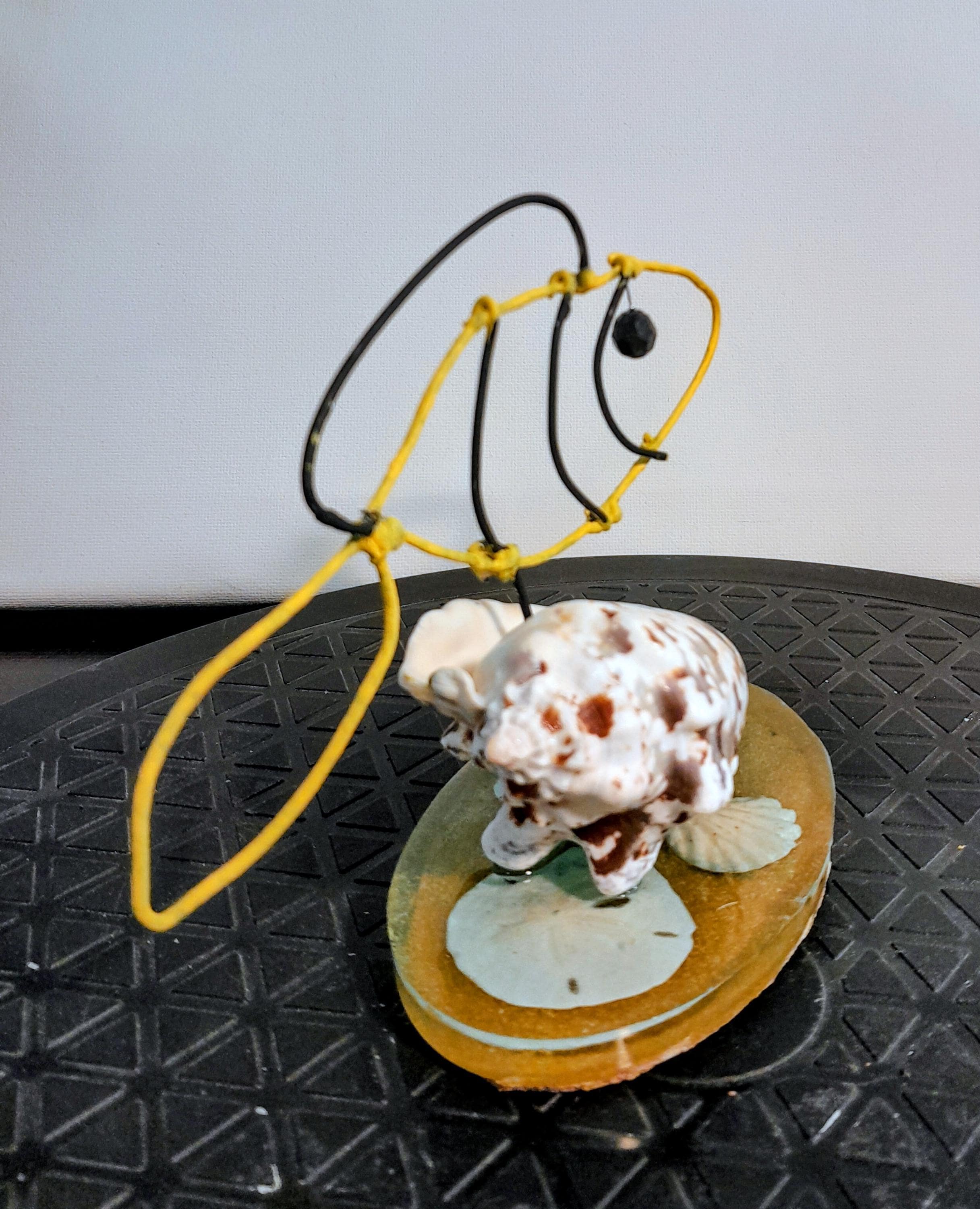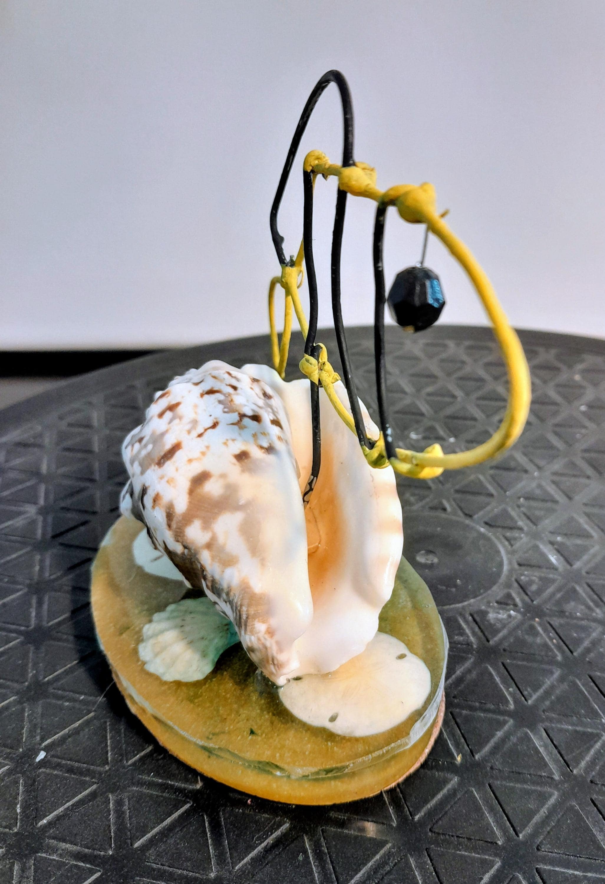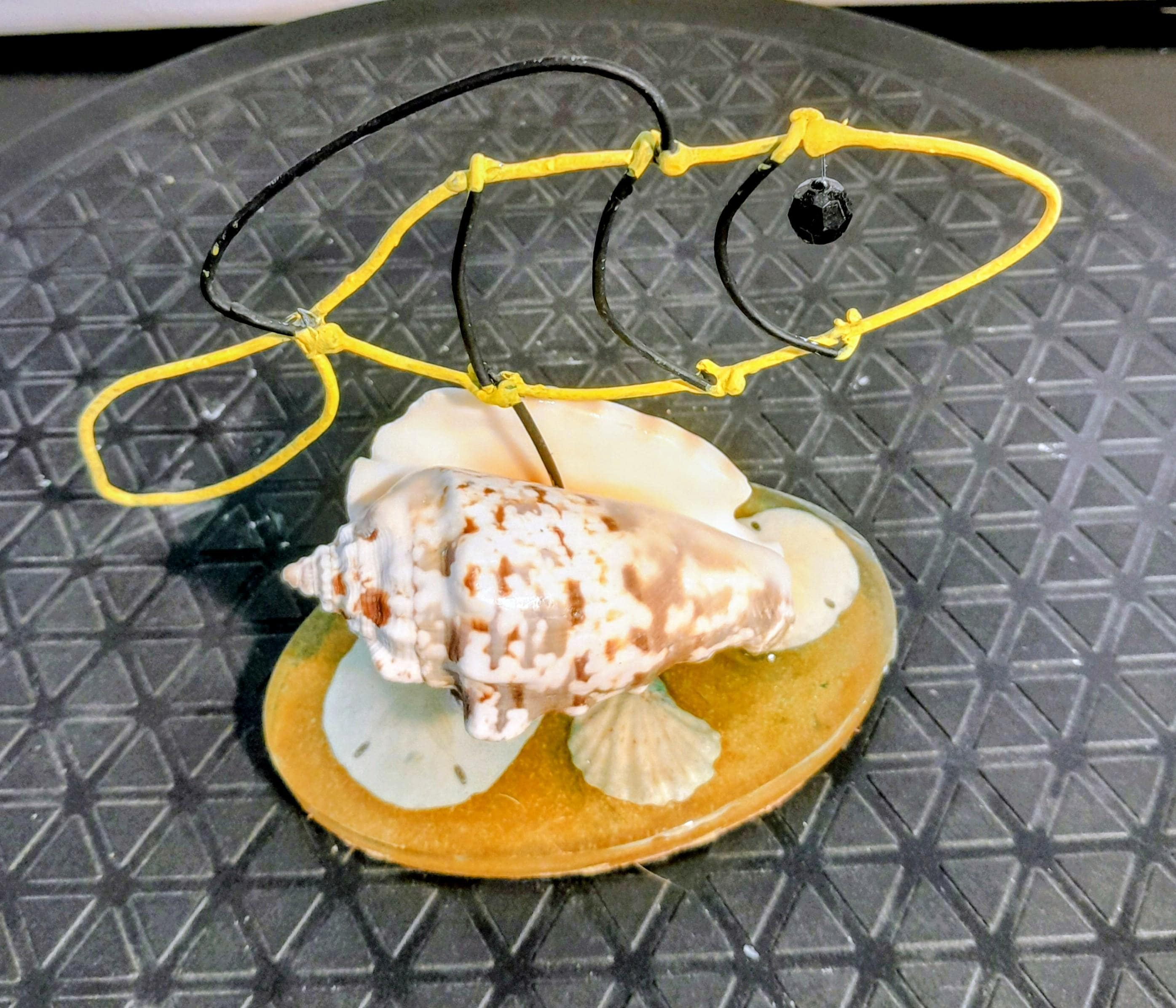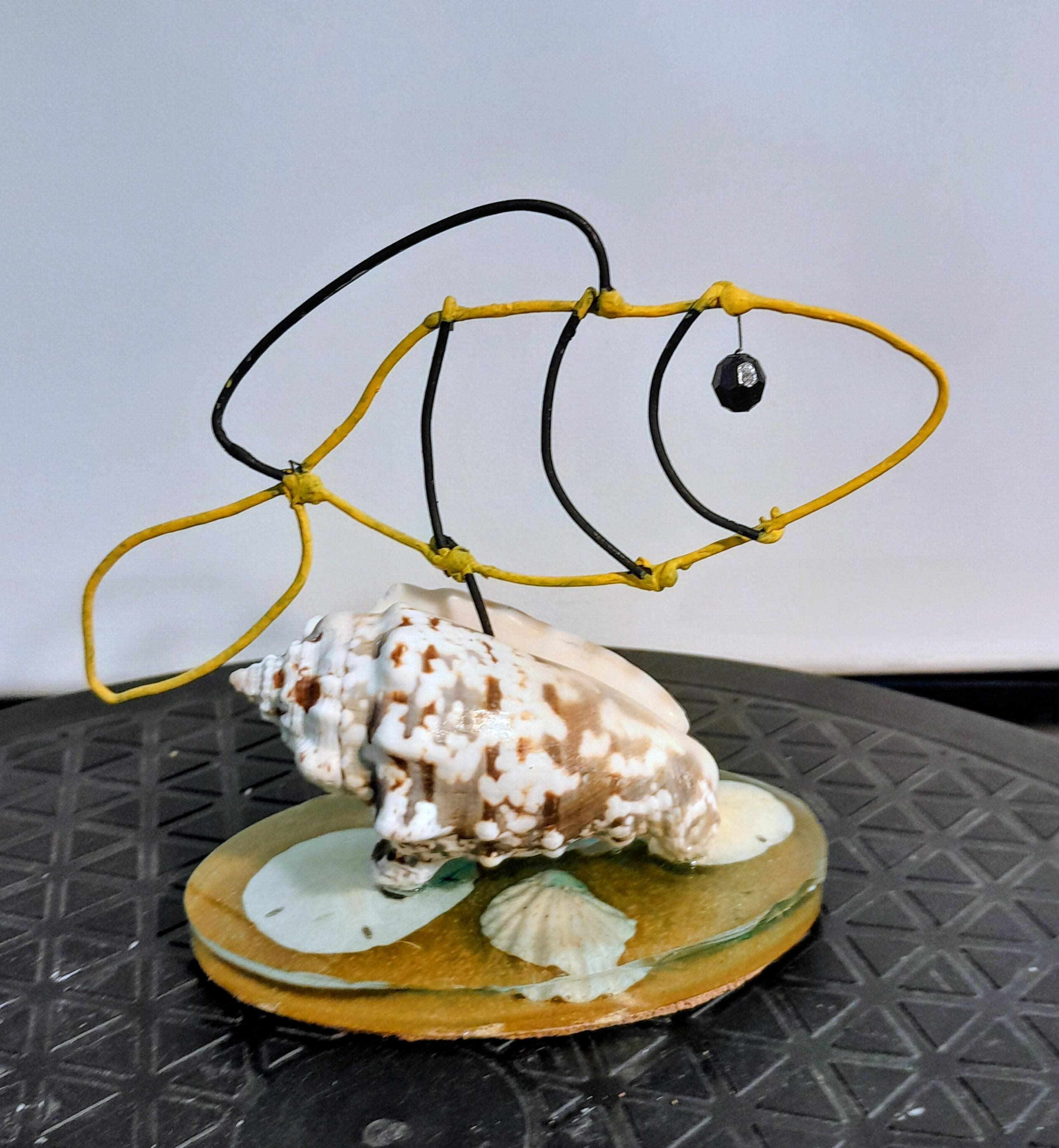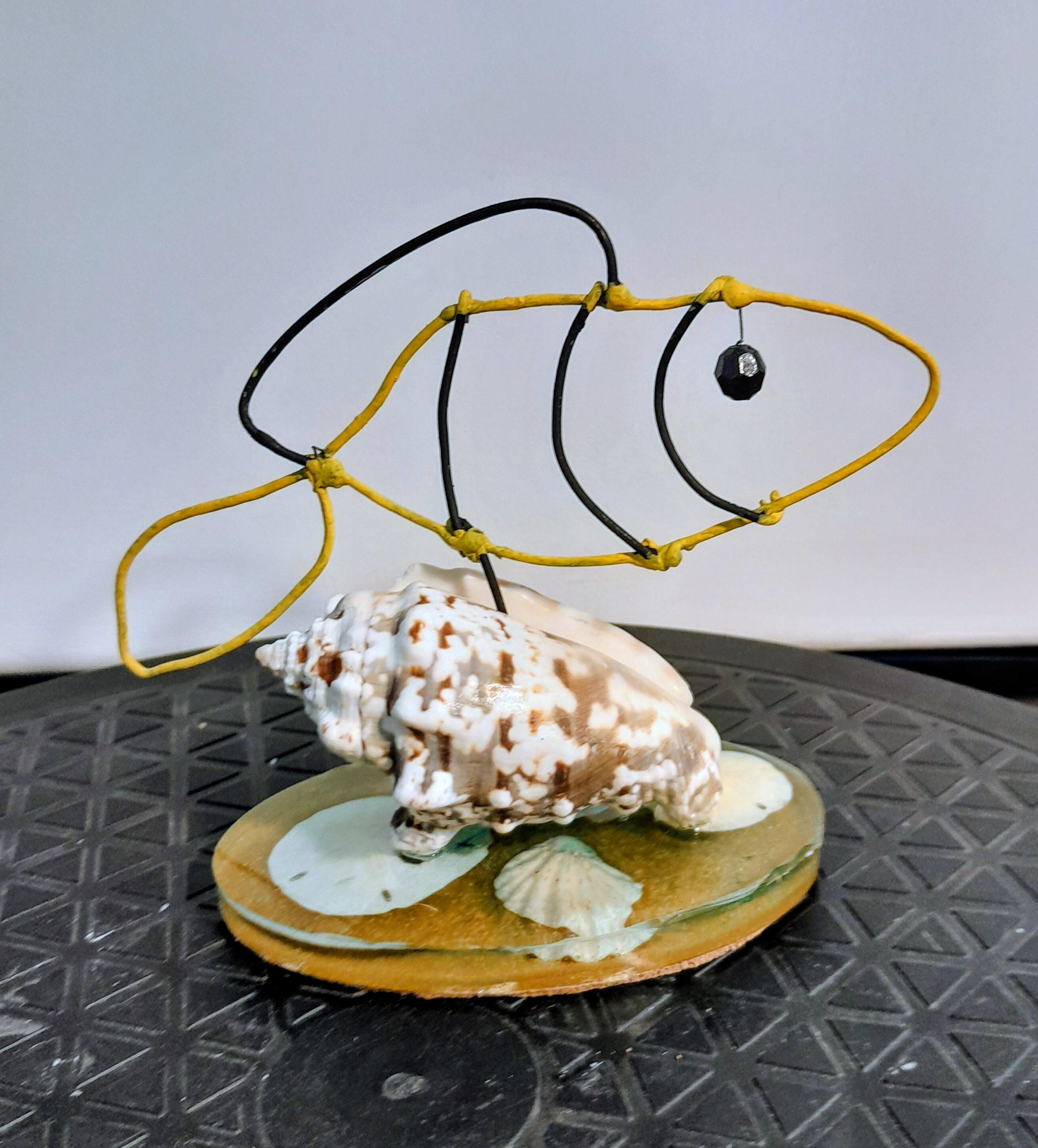Seashells with acrylic paint and a wire fish - original table decoration.