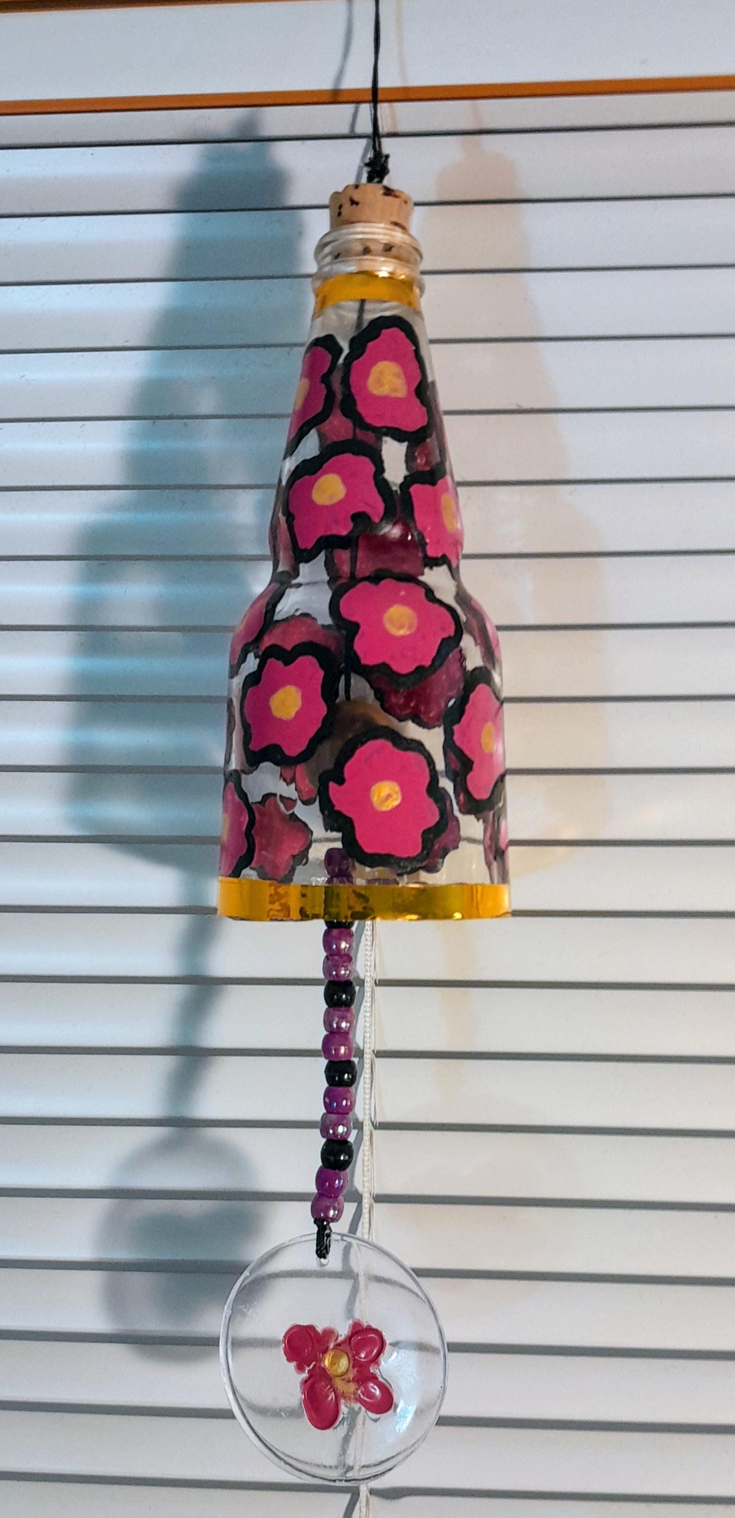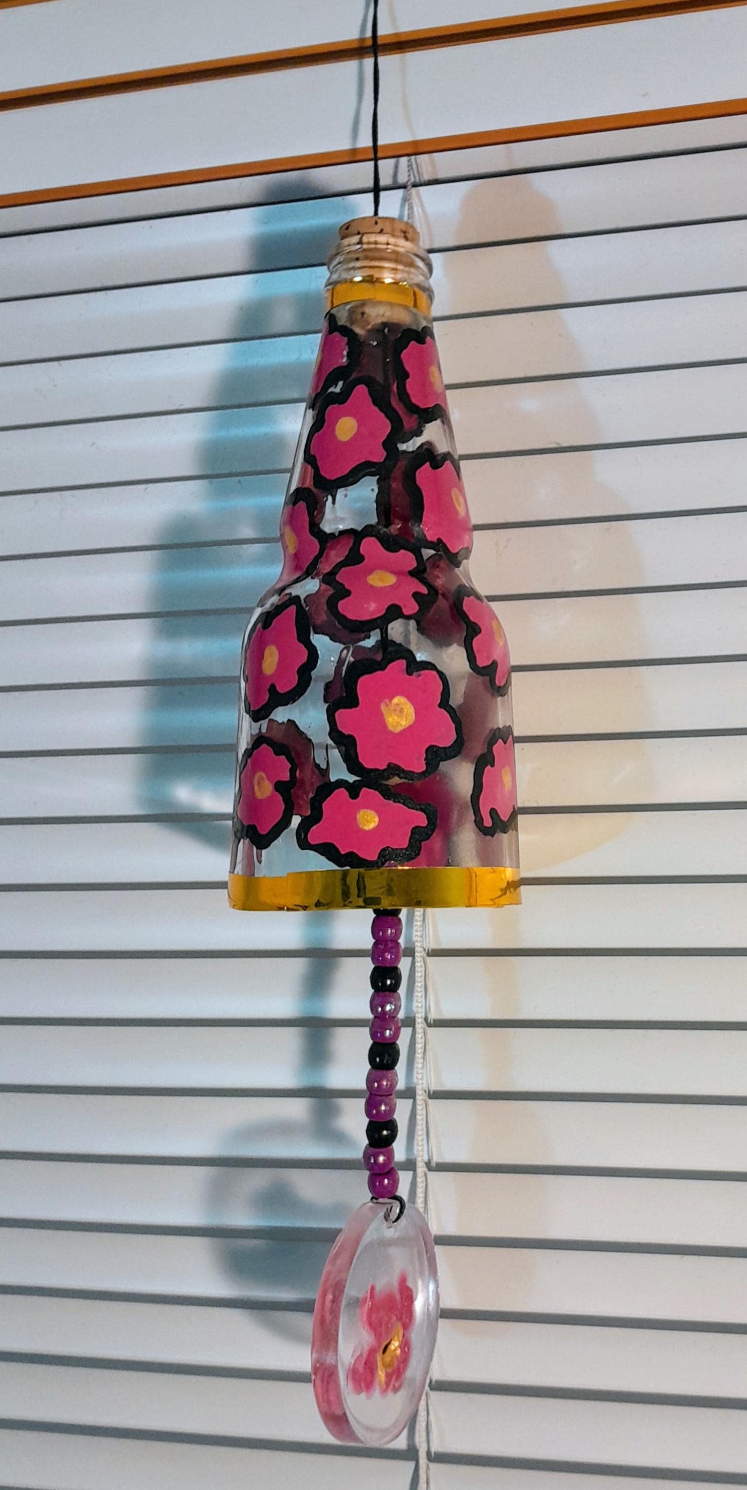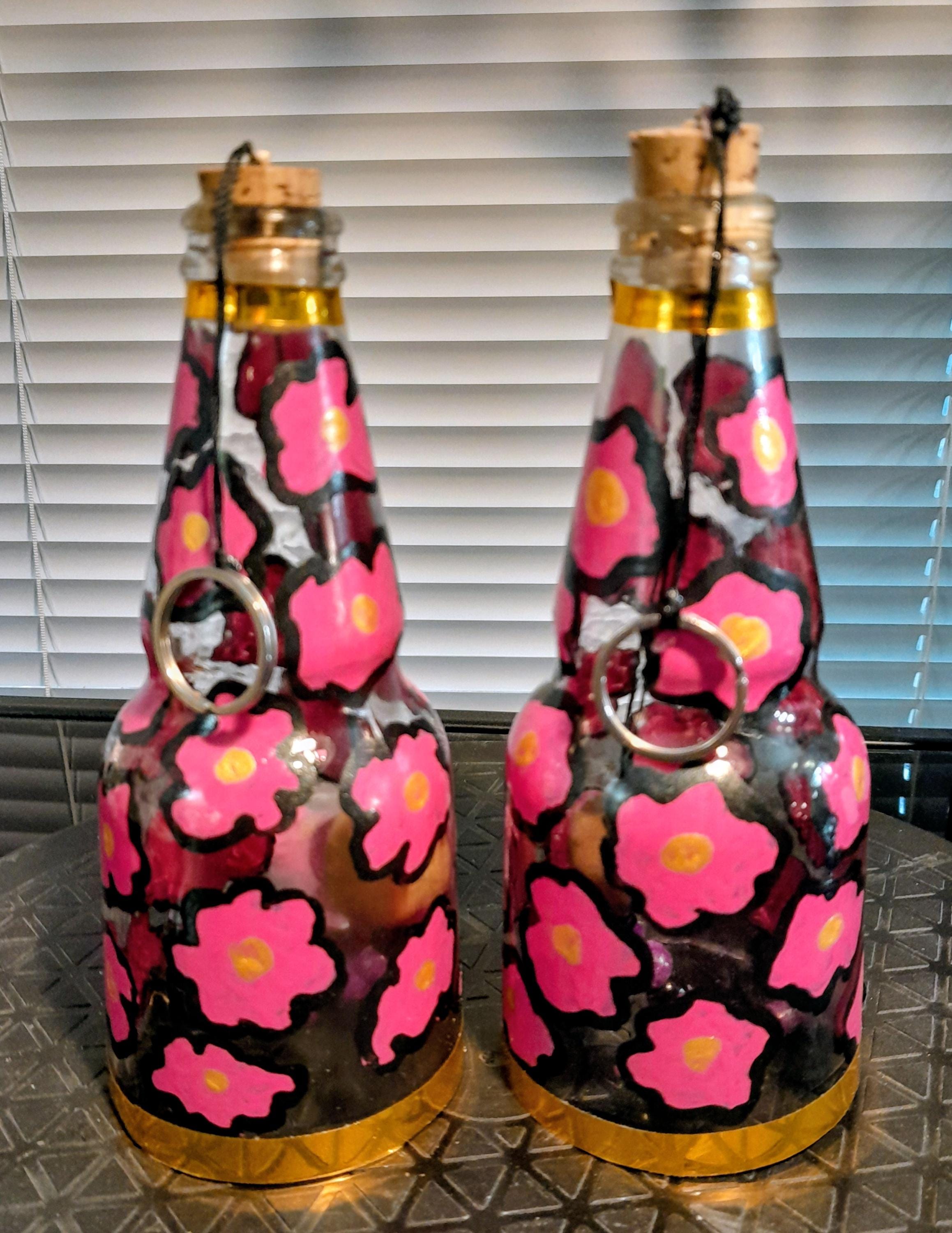 Made from two Beer Bottles hand-cut, and with a One-of-a-kind Artistic Design for an Outdoor Patio