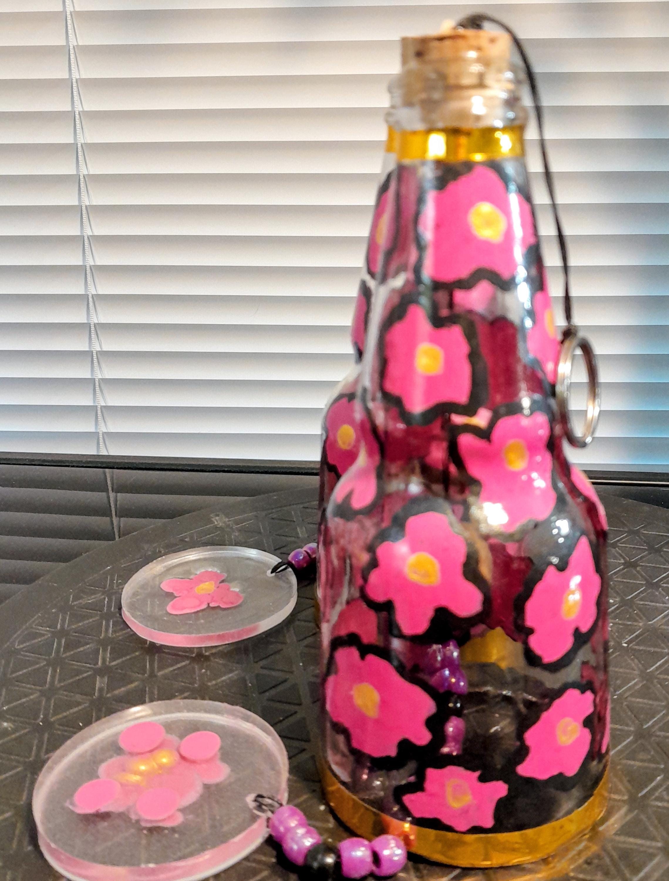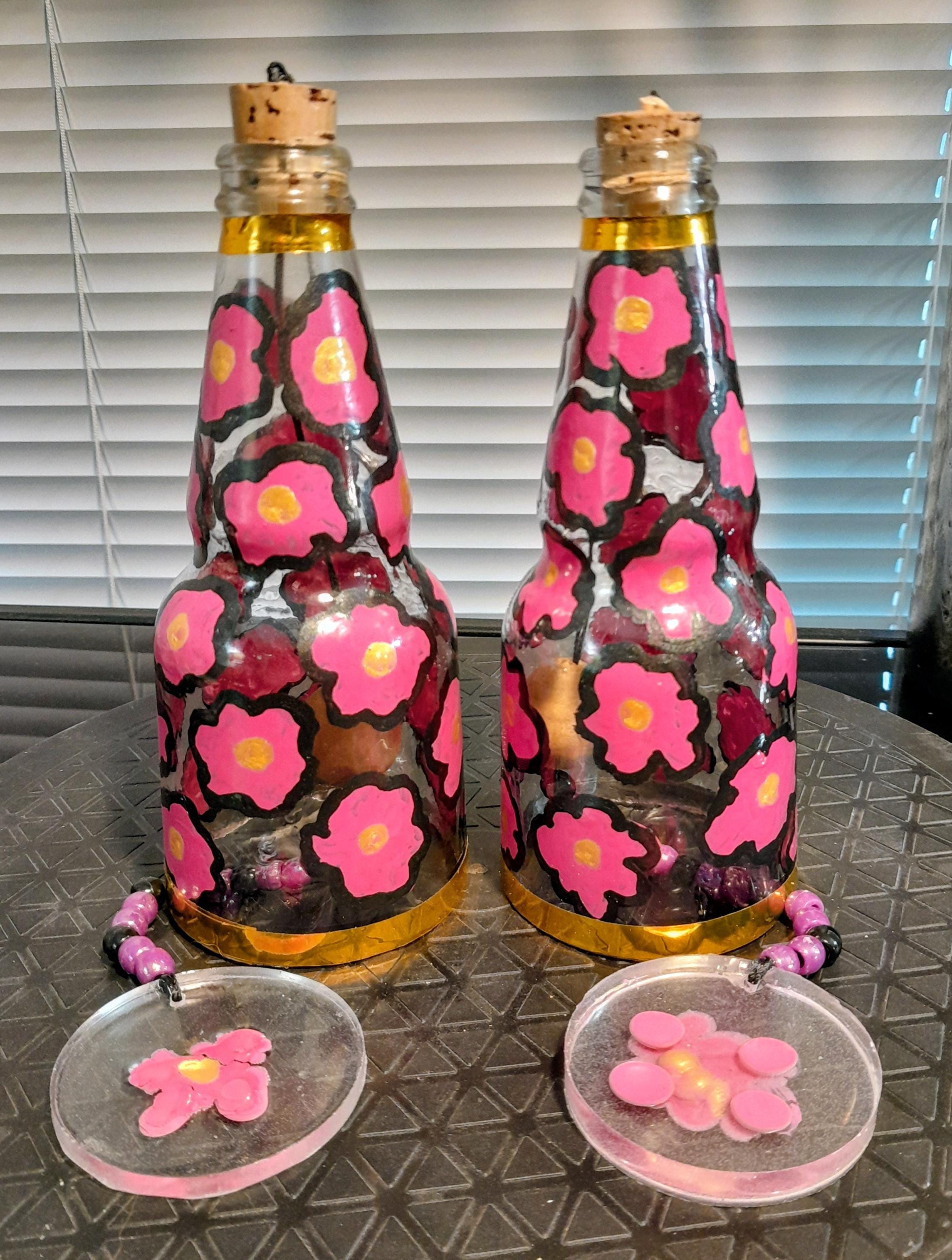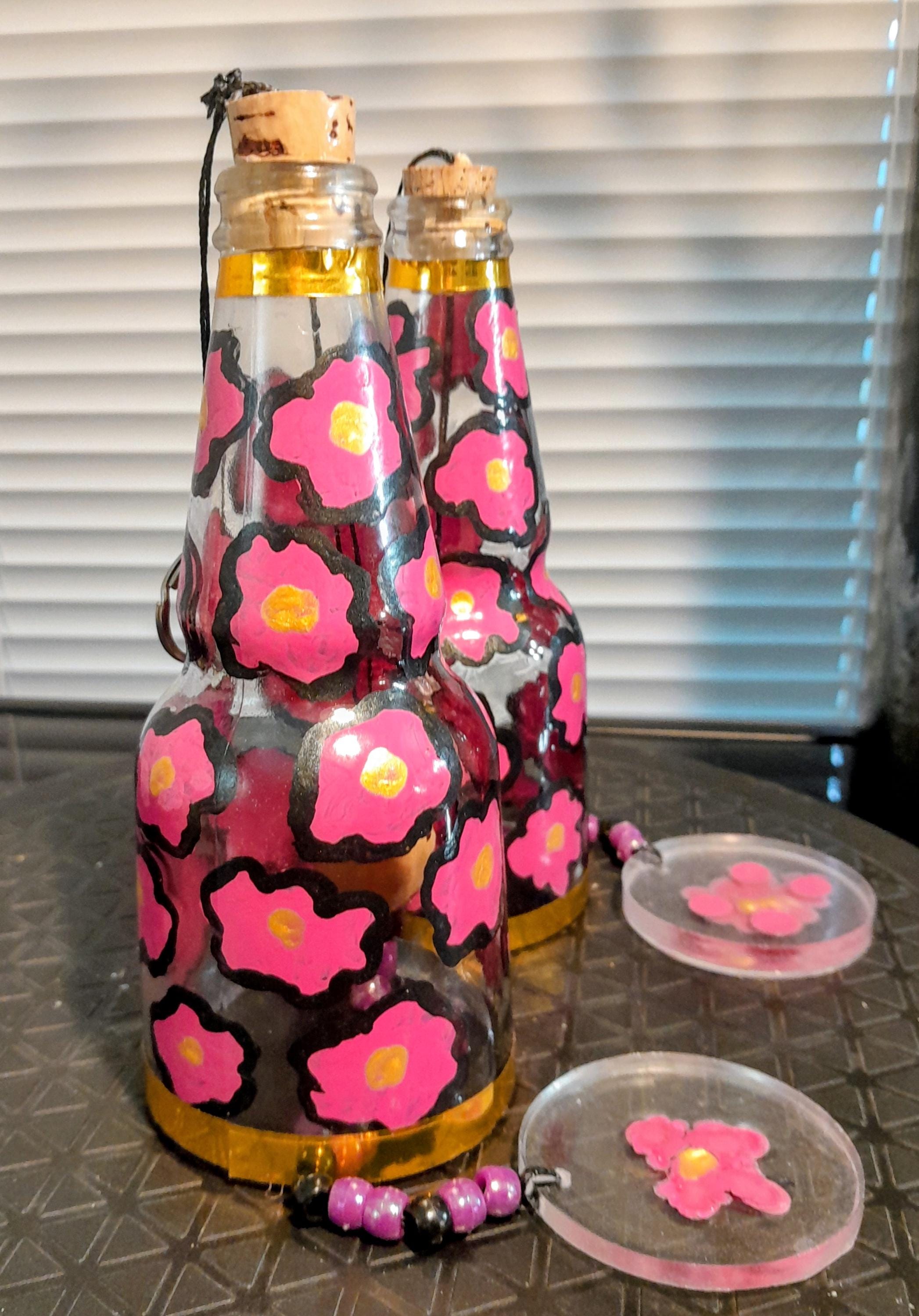 Made from two Beer Bottles hand-cut, and with a One-of-a-kind Artistic Design for an Outdoor Patio