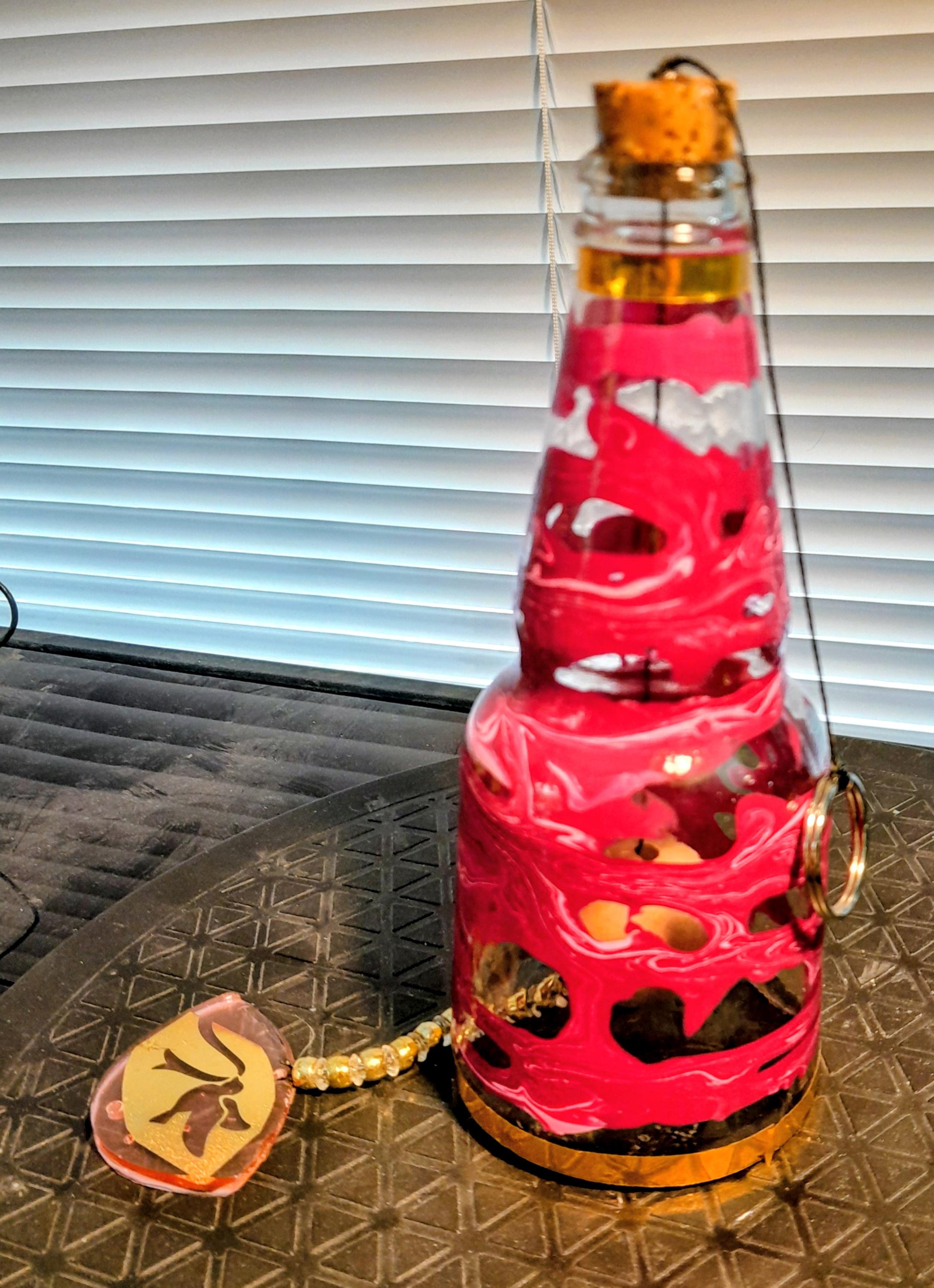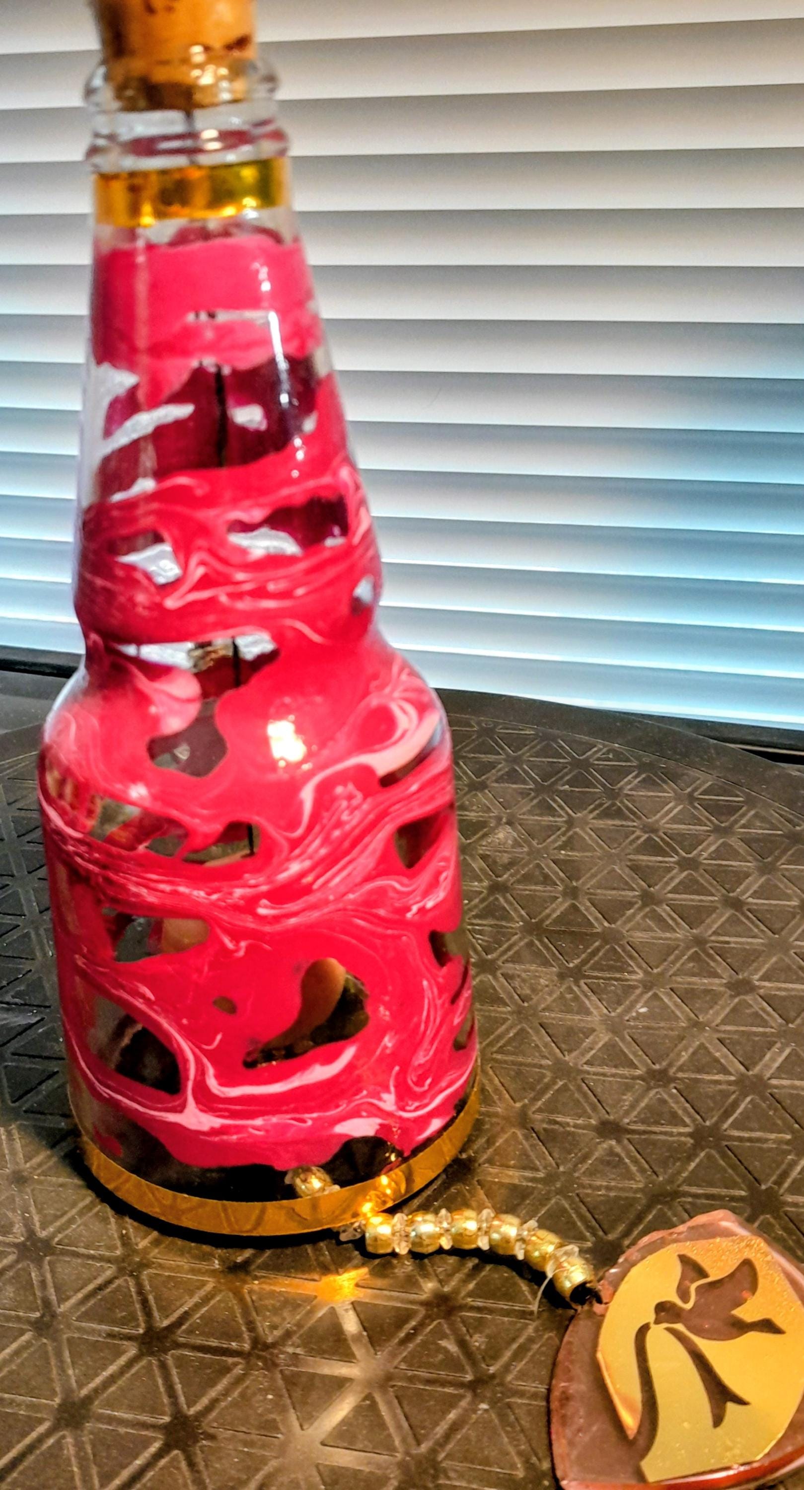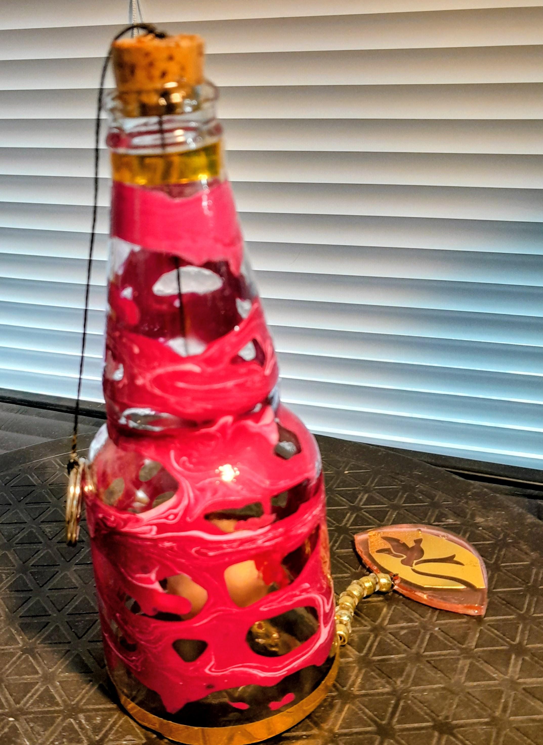 Made from a Beer Bottle, hand-cut, and with a One-of-a-kind Artistic Design for an Outdoor Patio