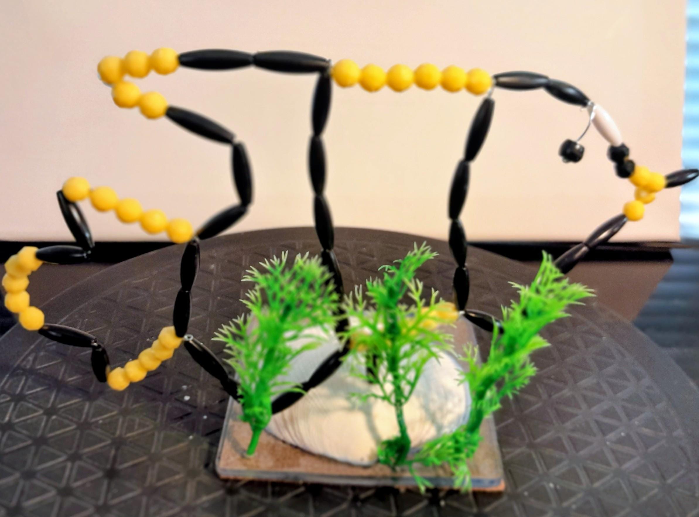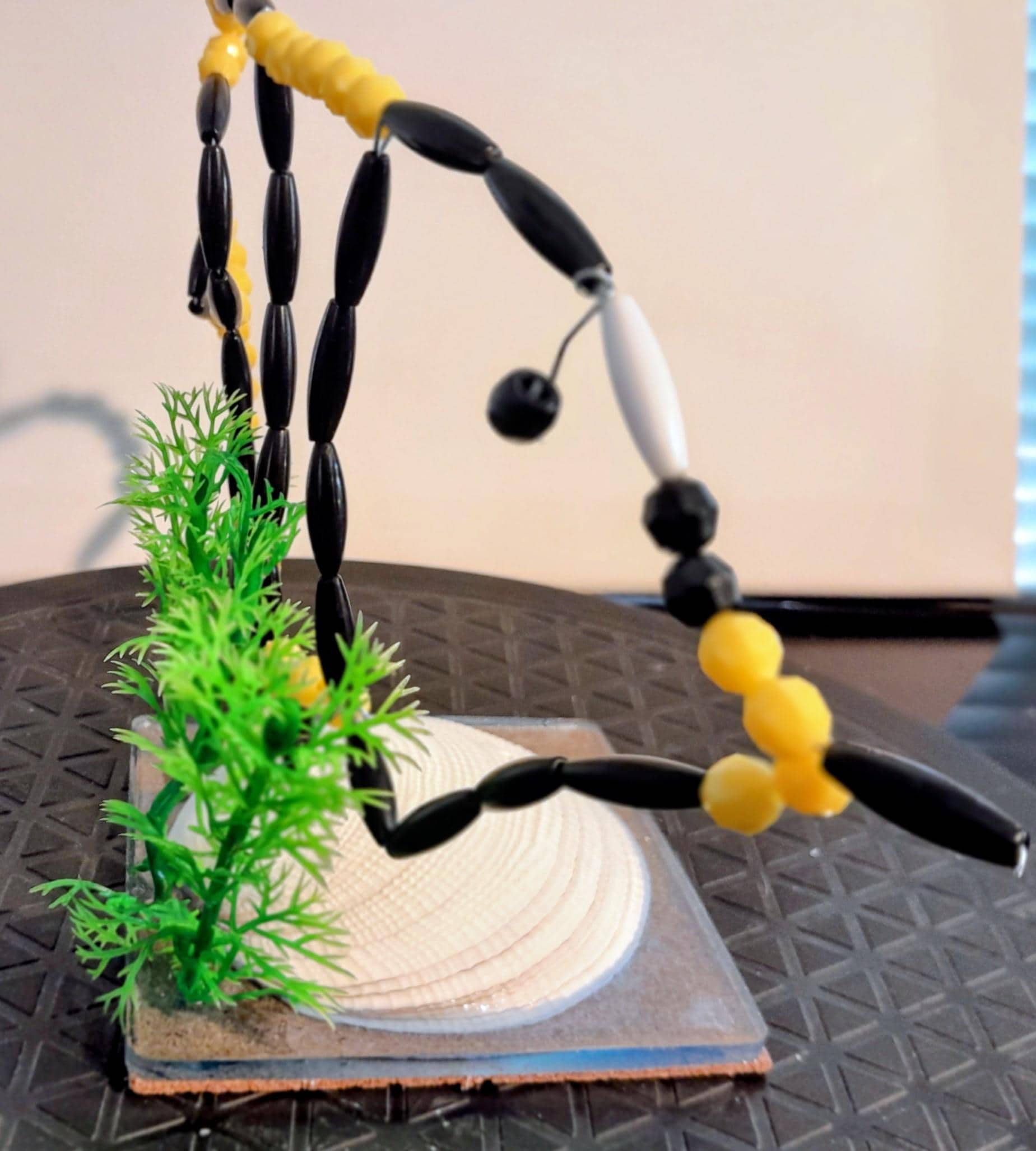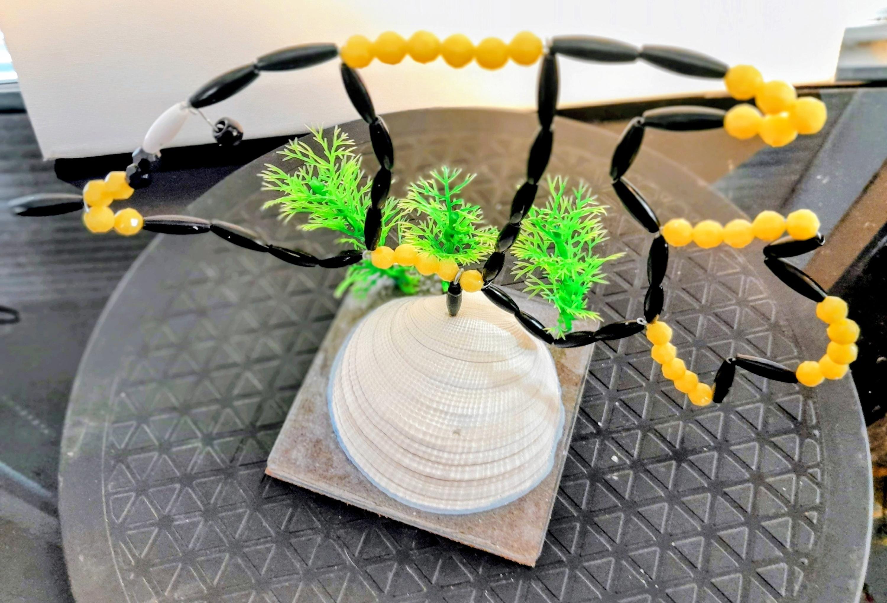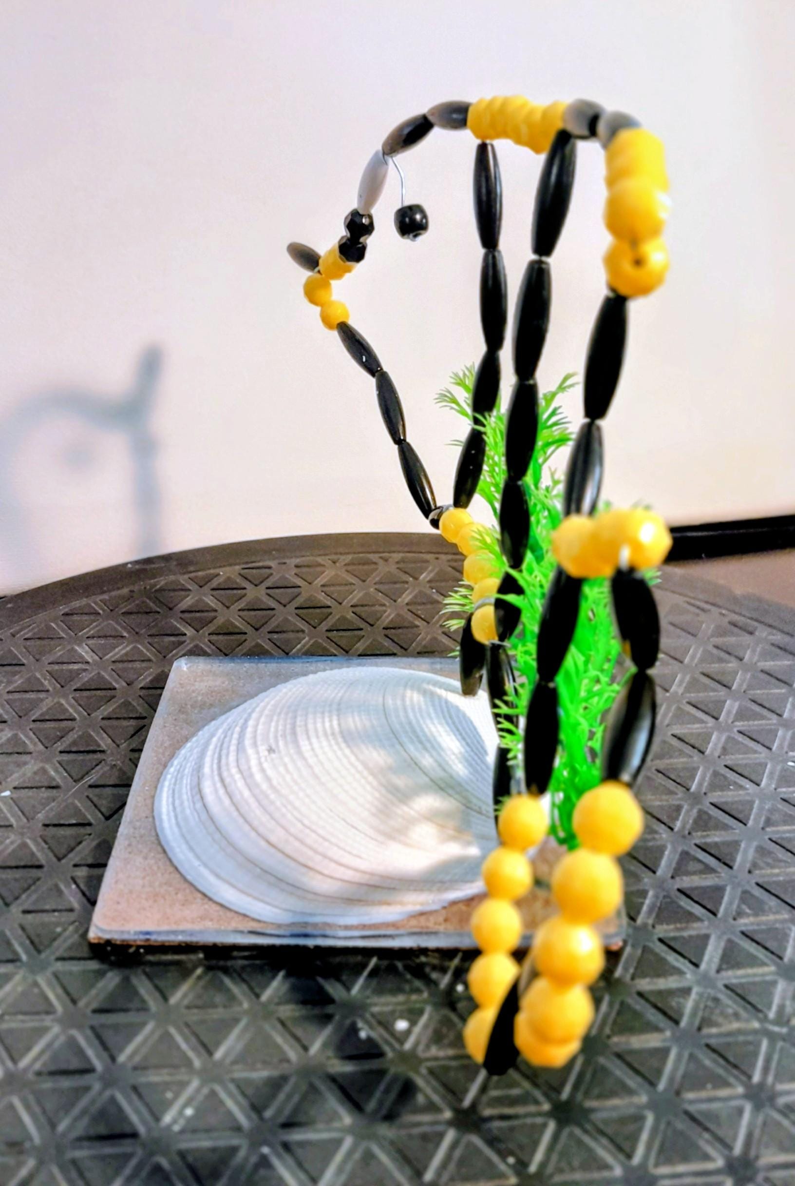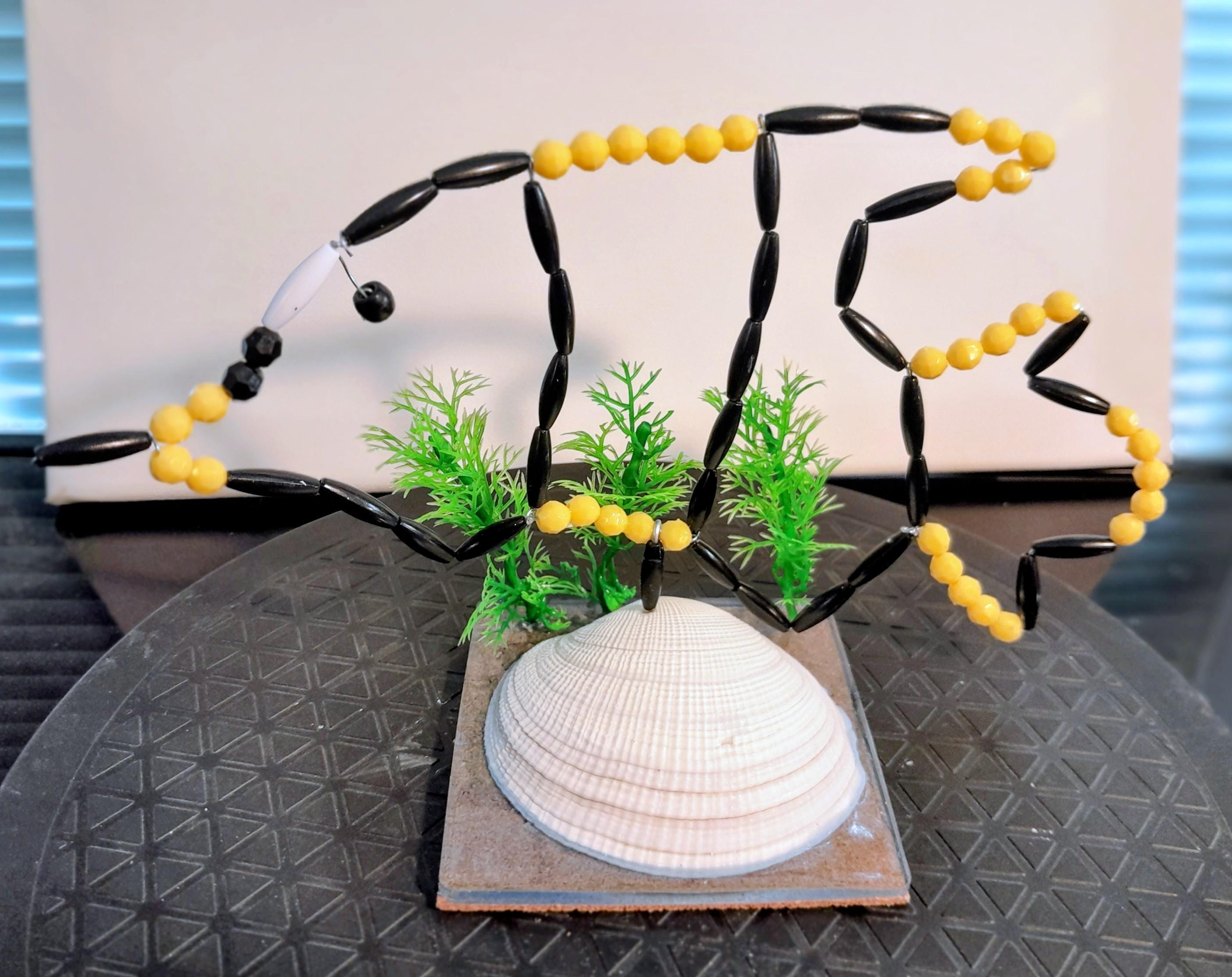 Seashell acrylic base with a wire beaded fish - an original table decoration