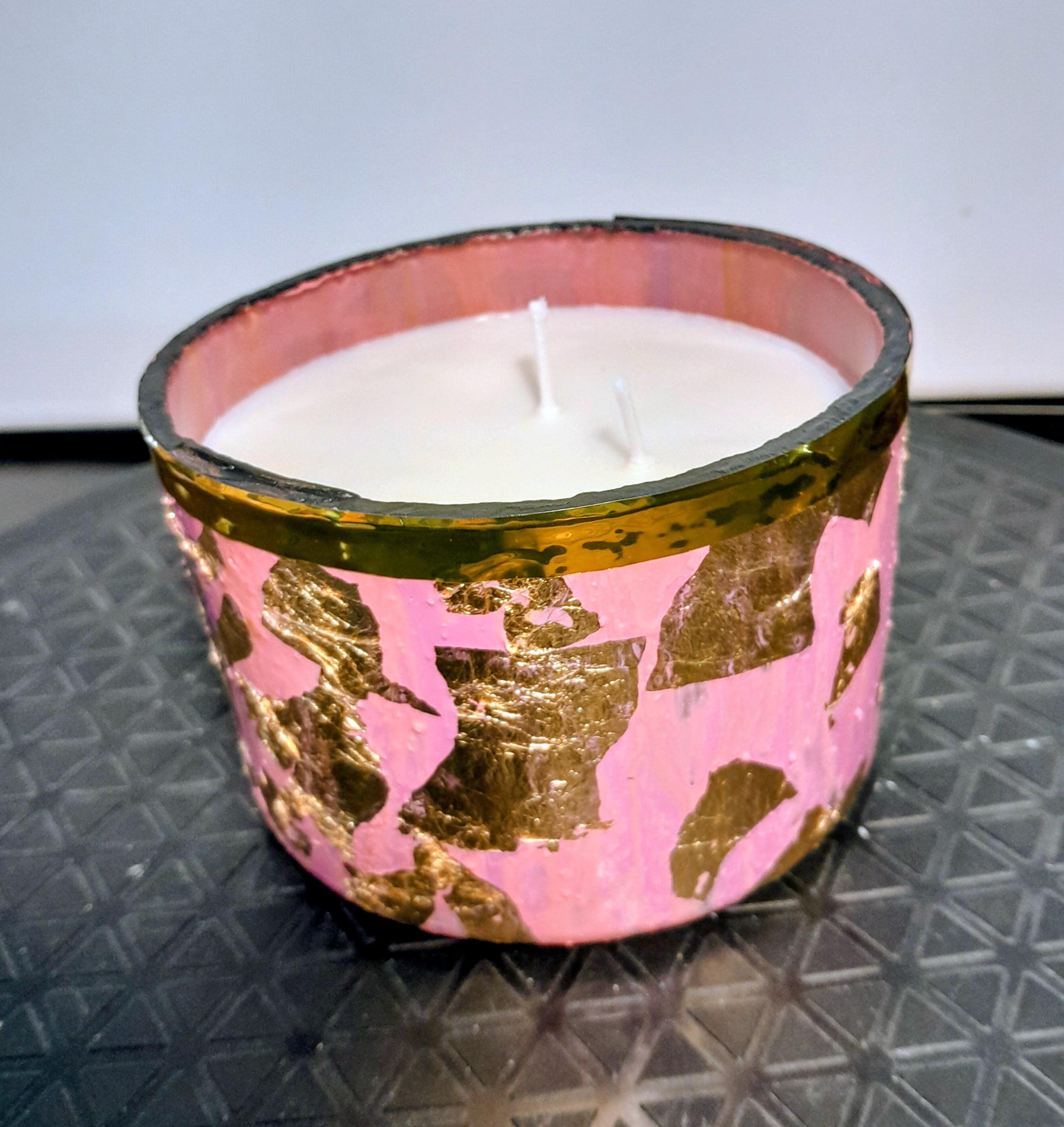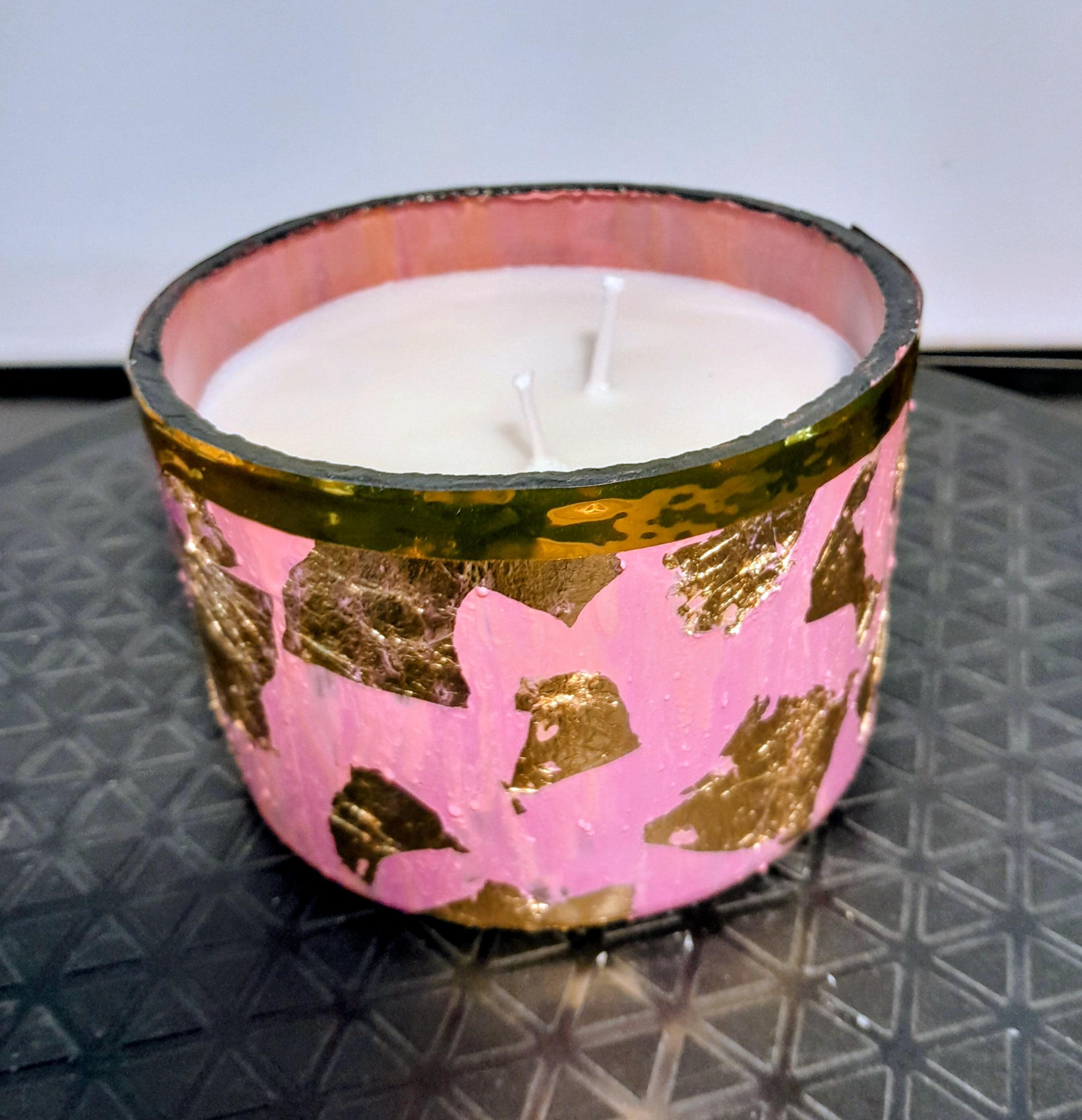 24oz Soy Candle Vanilla Scented. Beautiful handmade, with a colorful acrylic design