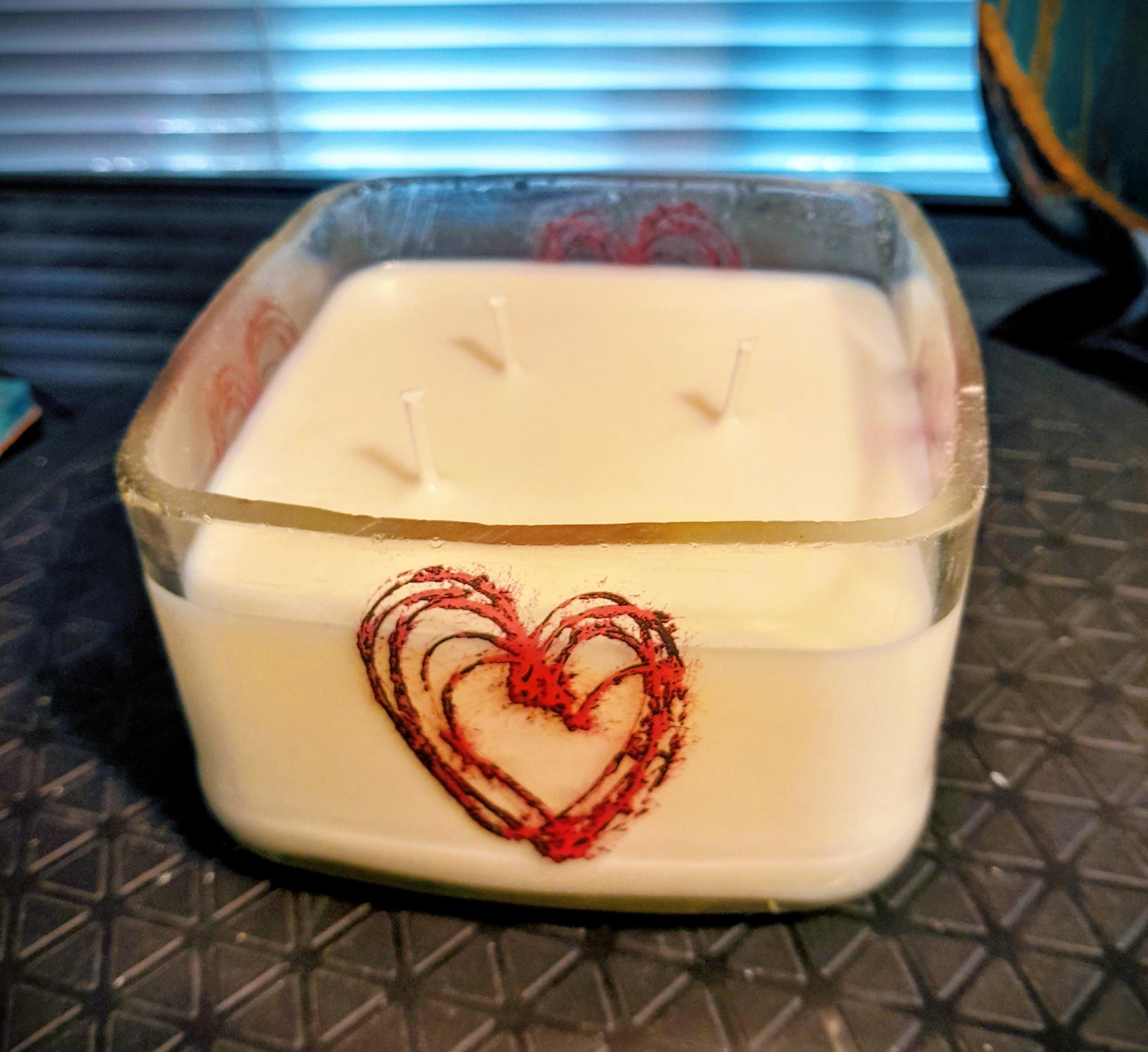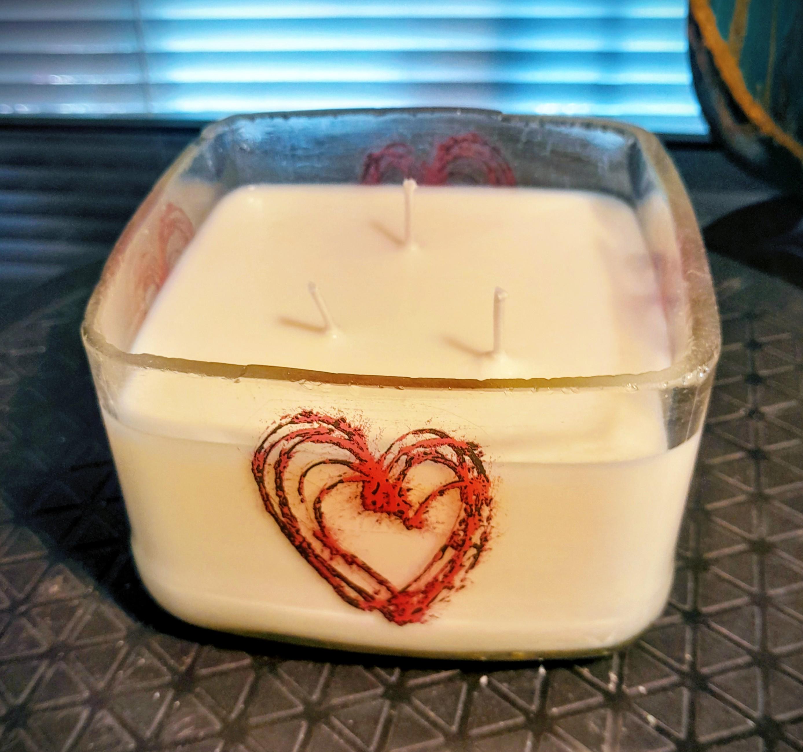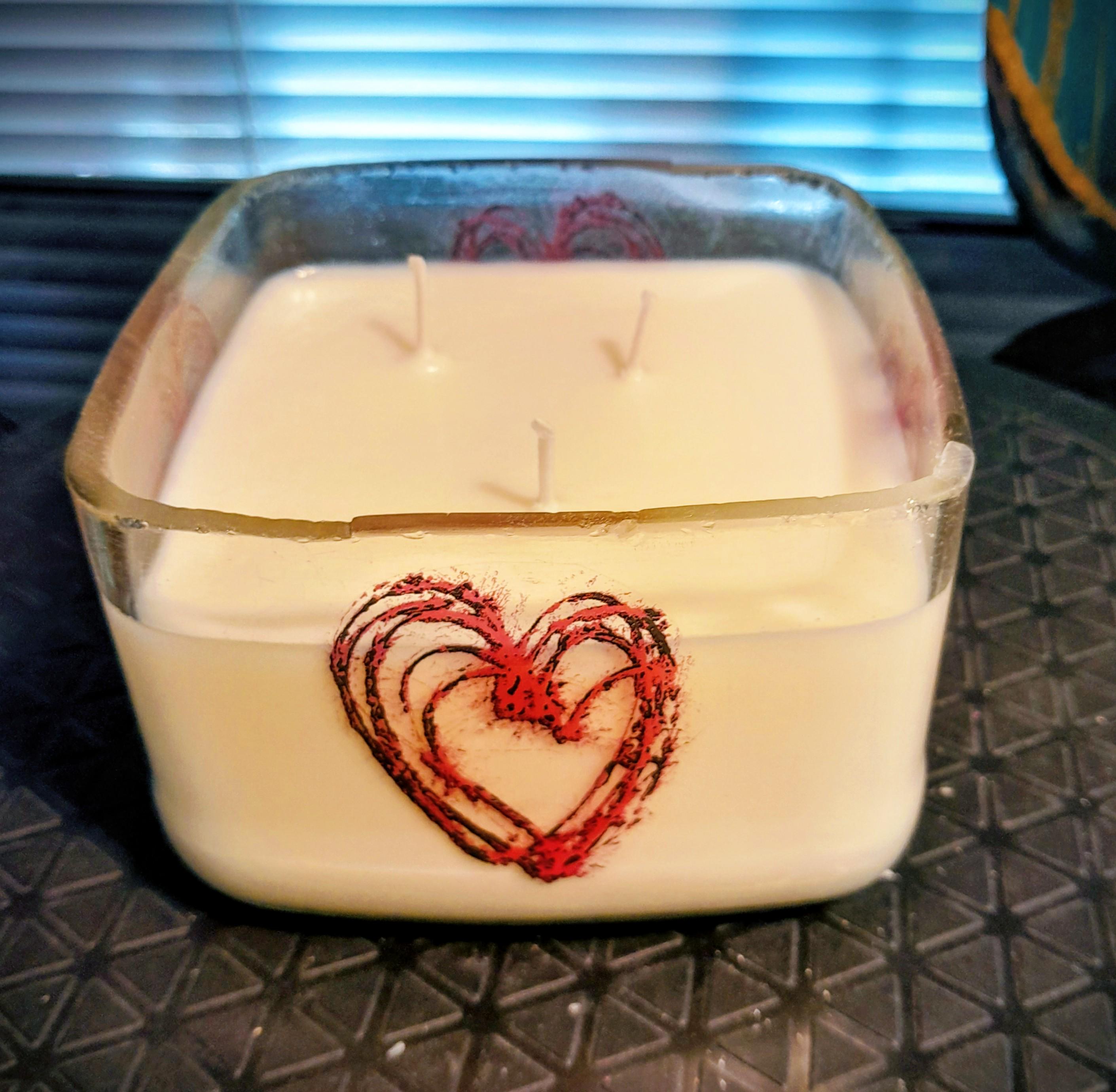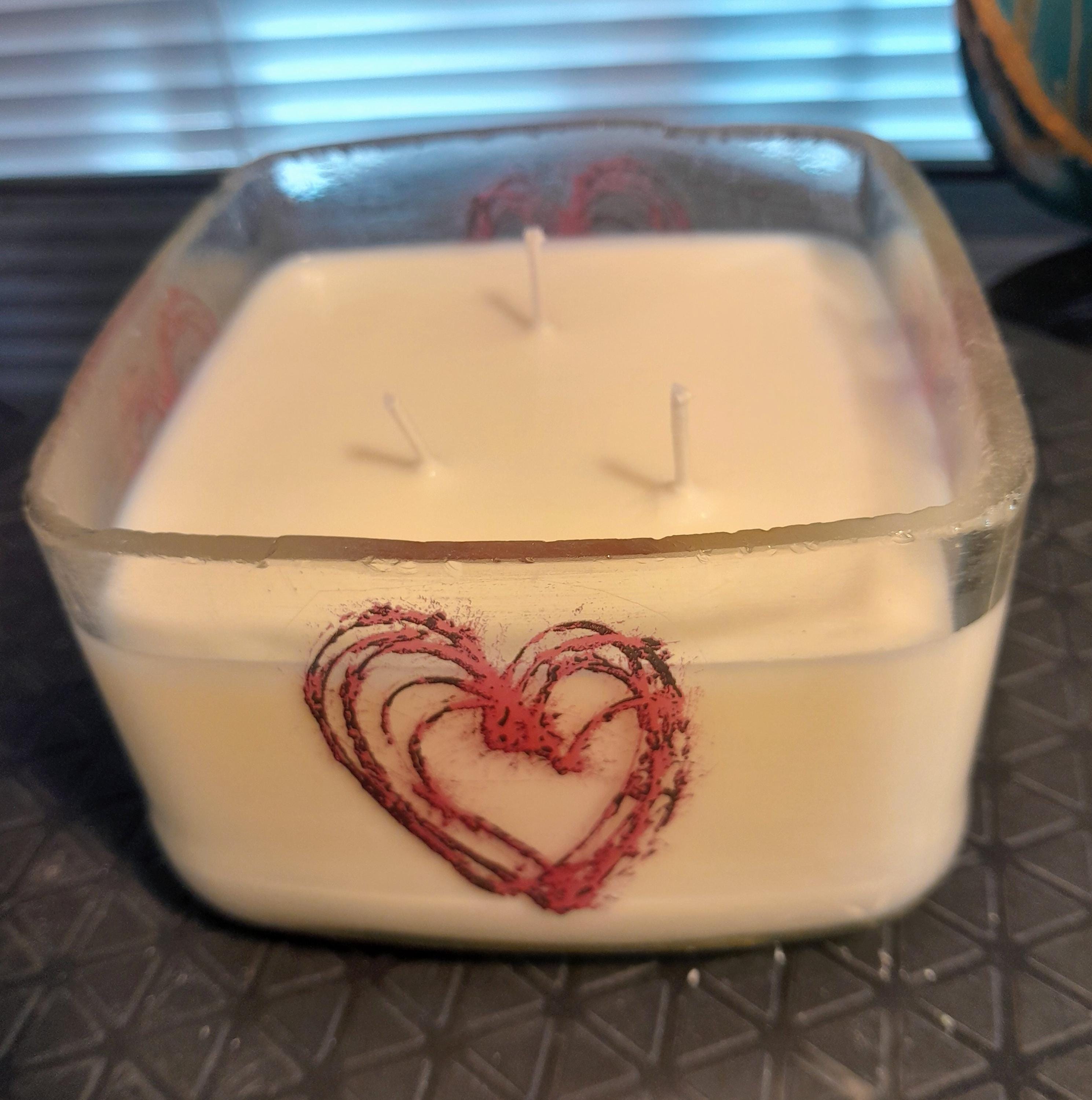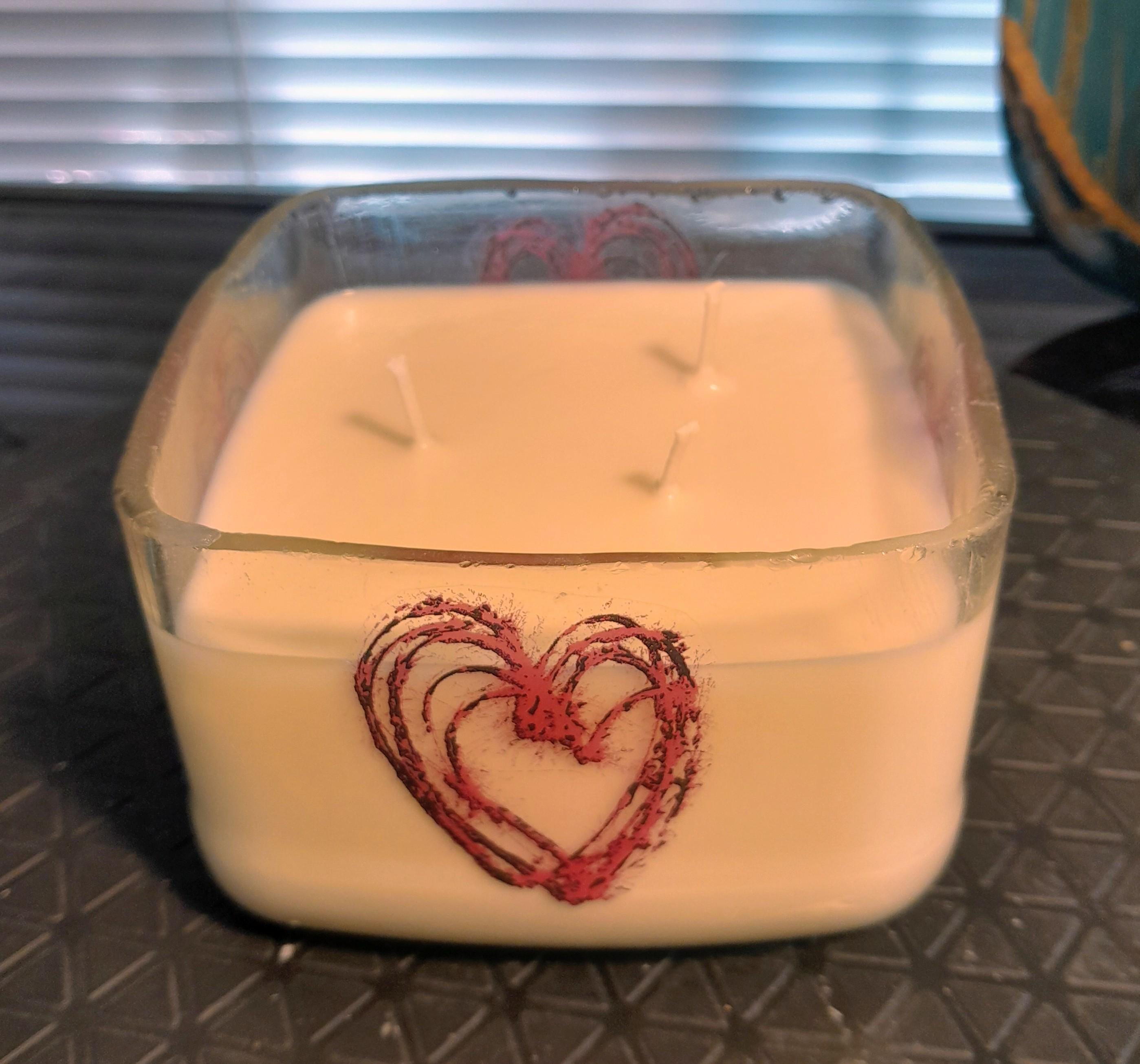 24oz Soy Candle Vanilla Scented. Beautiful handmade, with heart decals