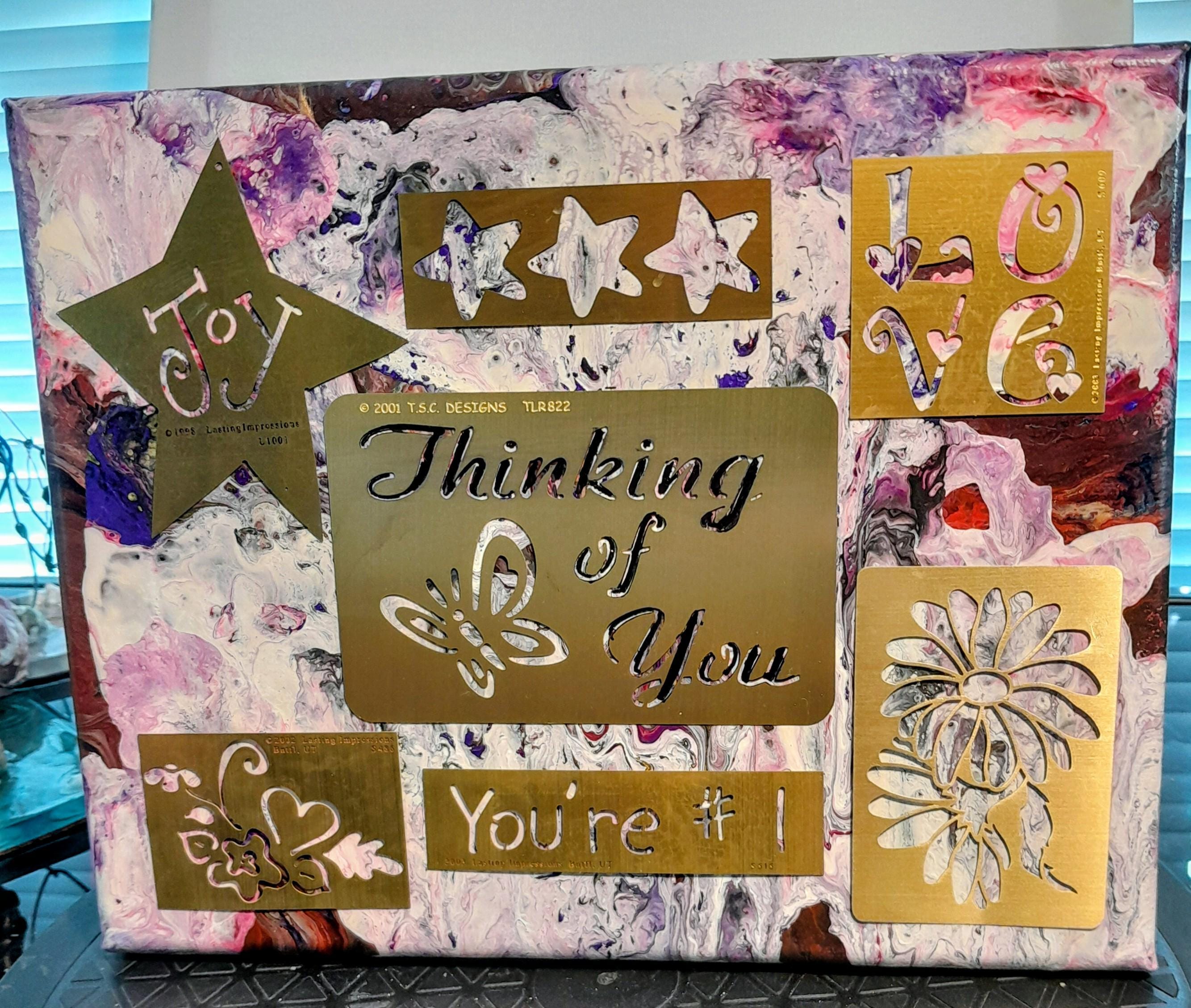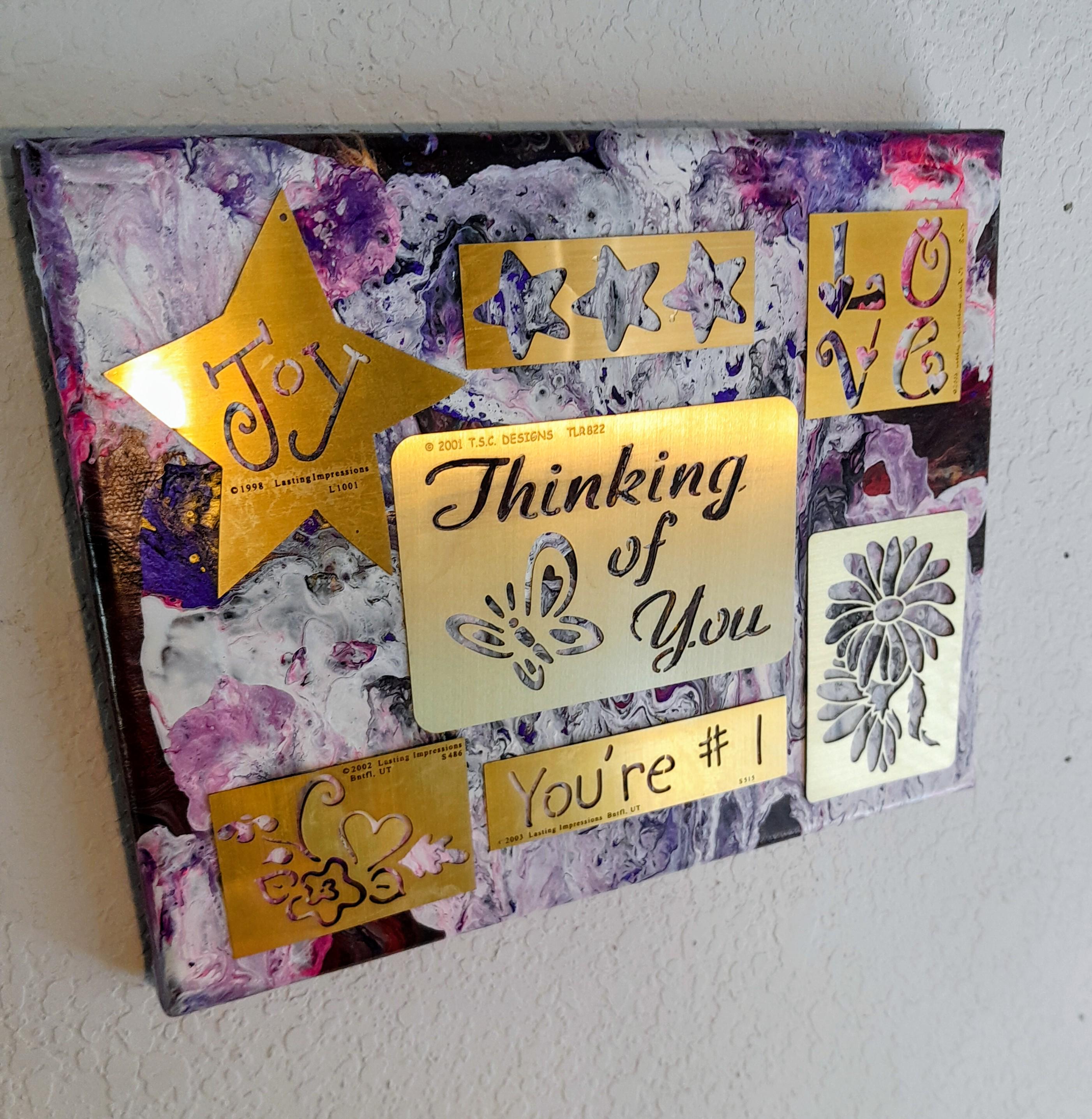 Original Acrylic Contemporary Art Painting with bronze love signs