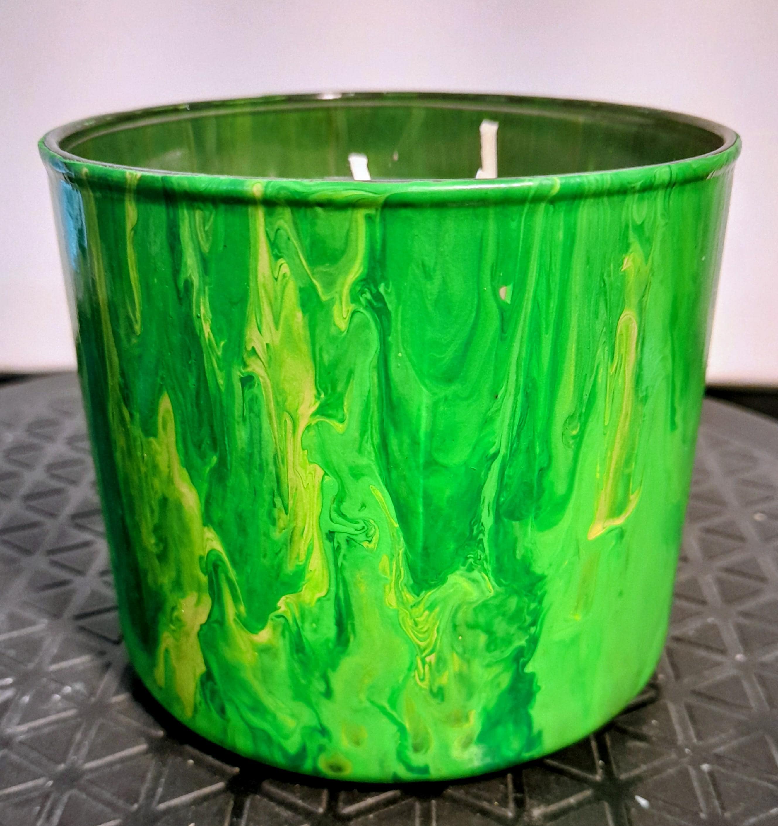 24oz Soy Wax Candle Vanilla Scented. Beautiful, handmade, with a colorful acrylic design