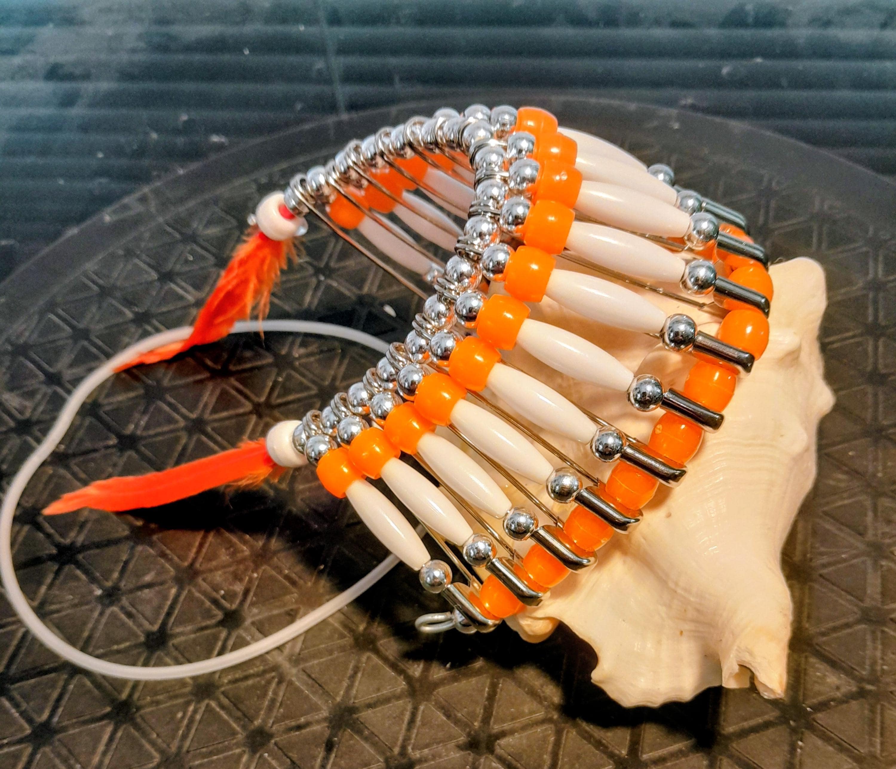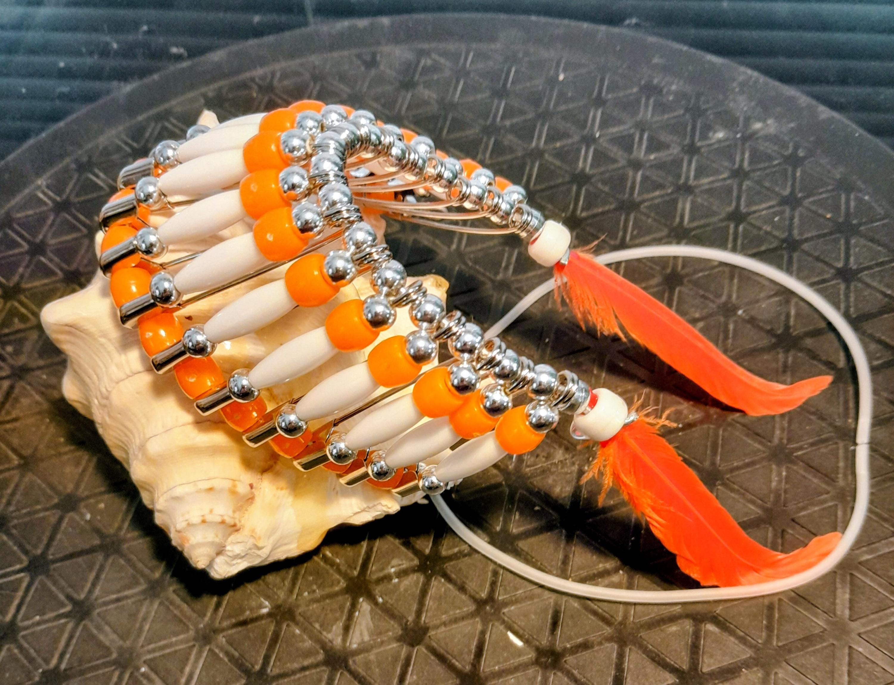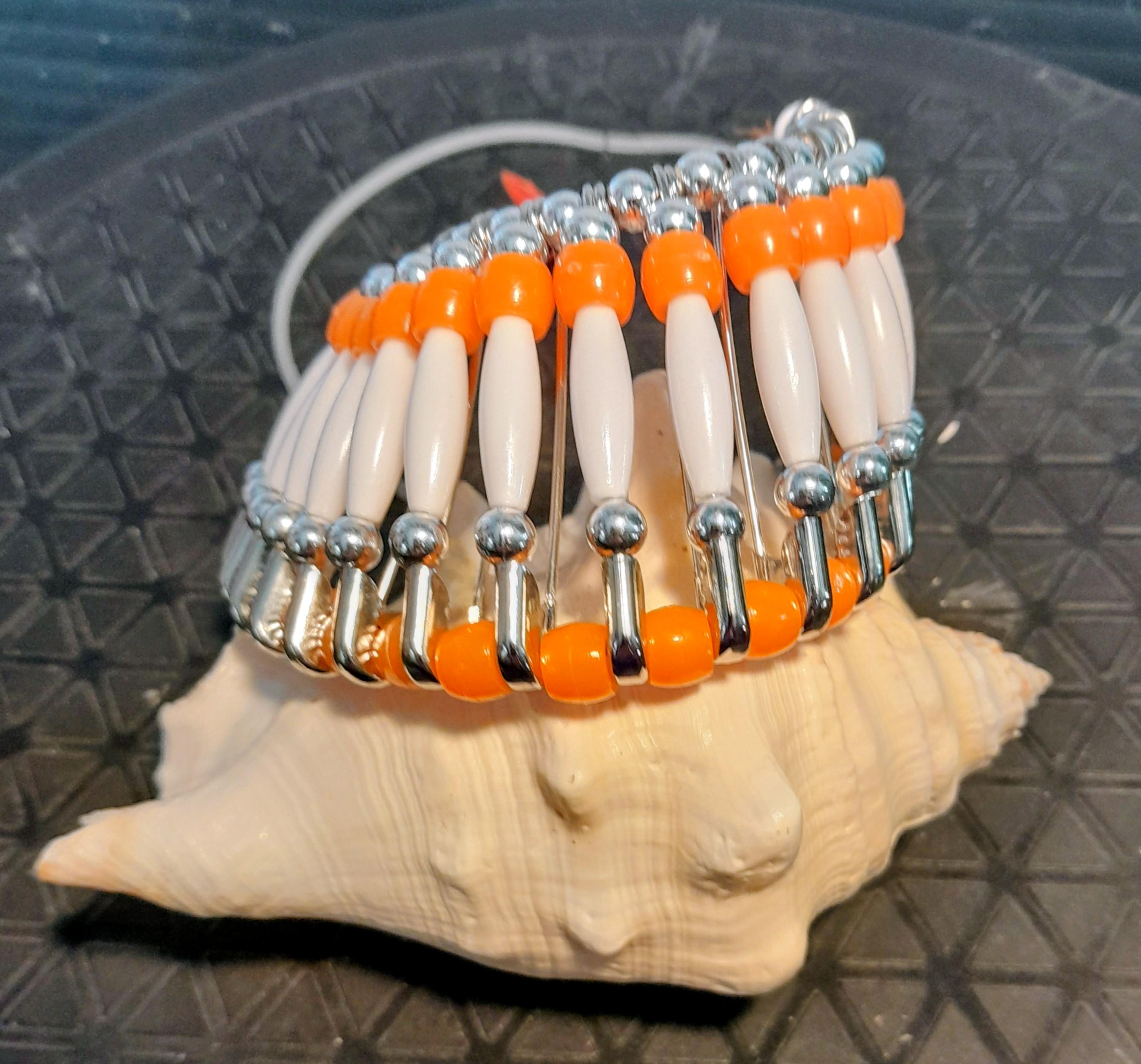 Beaded Headdress - Orange & White