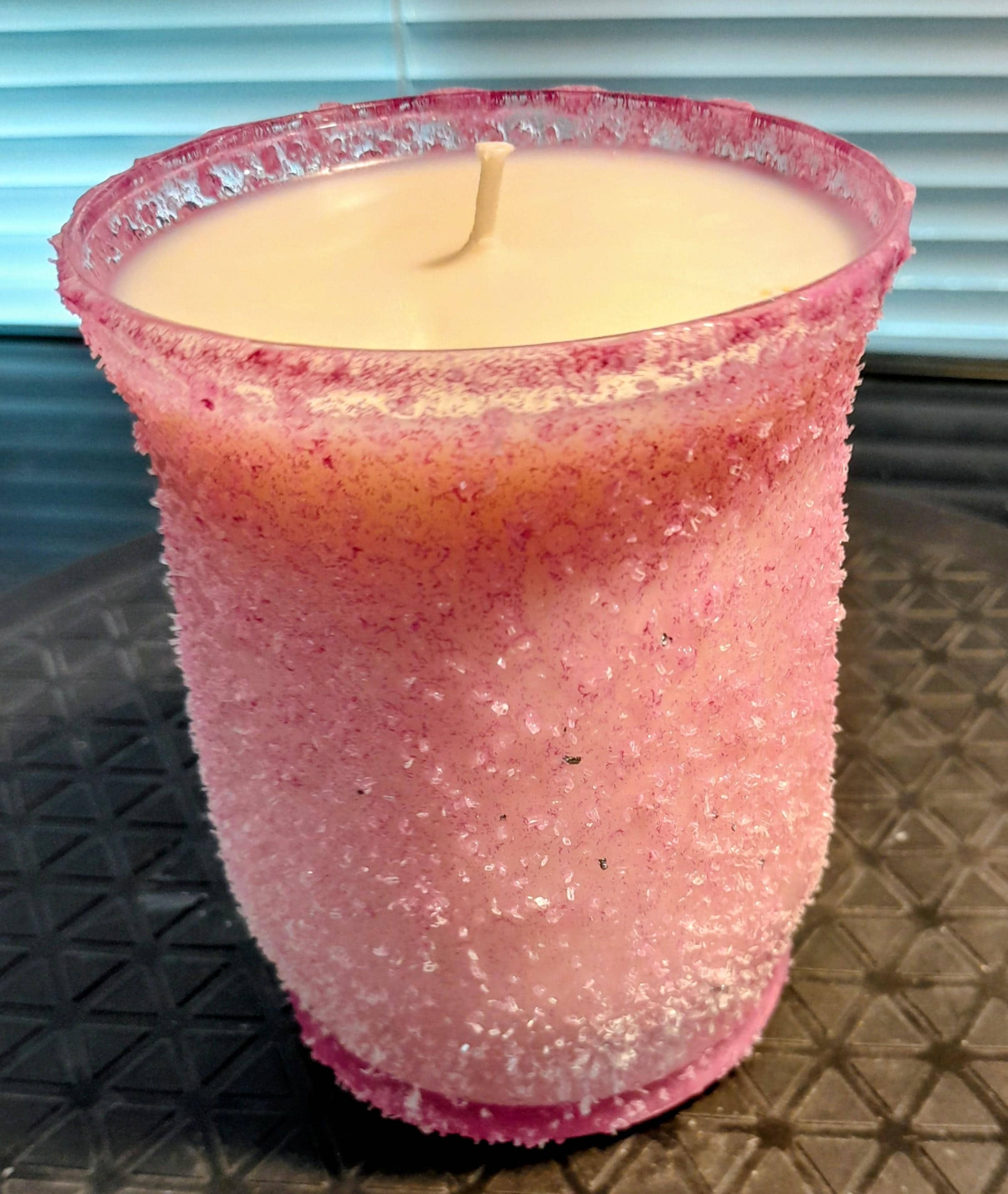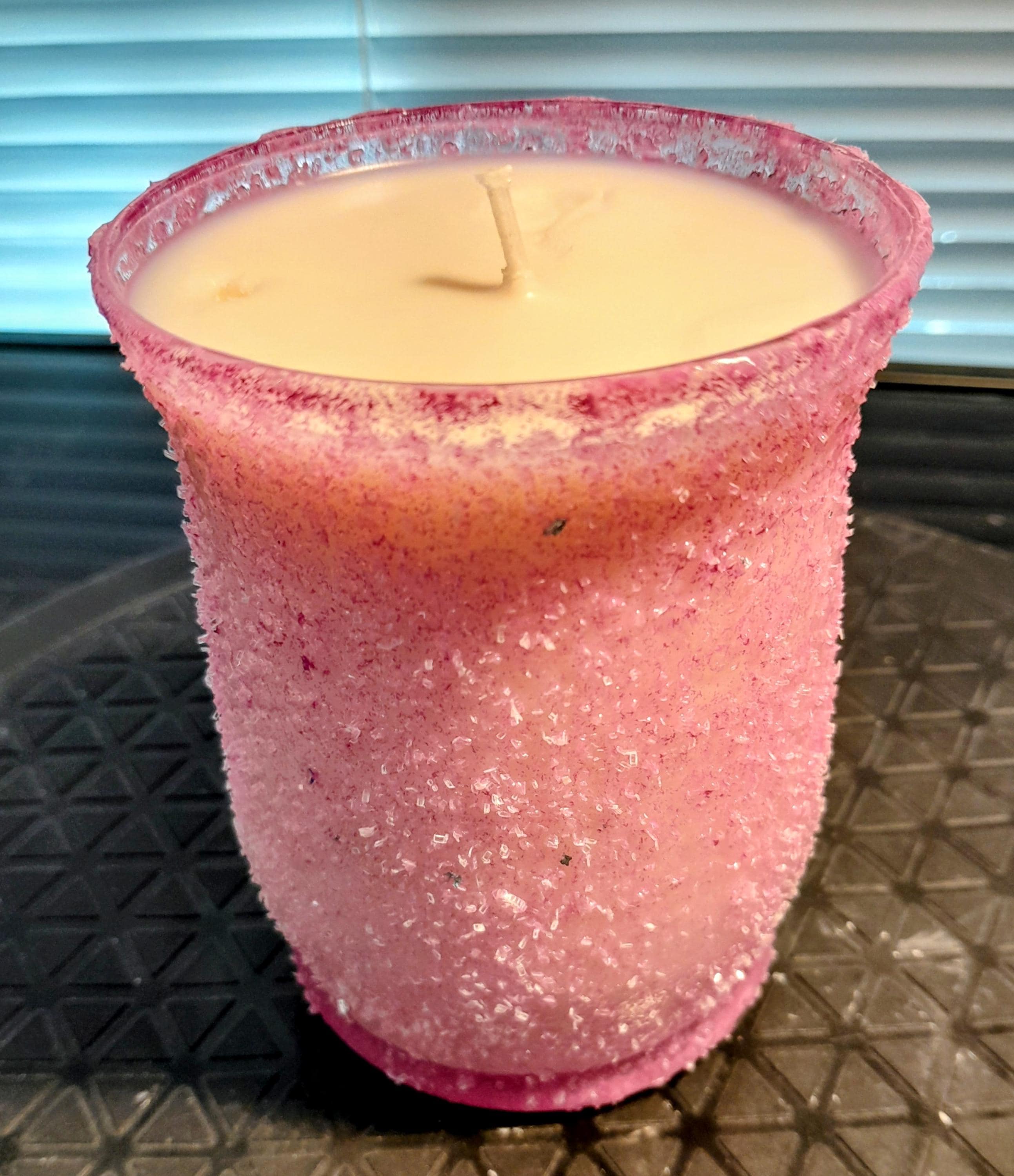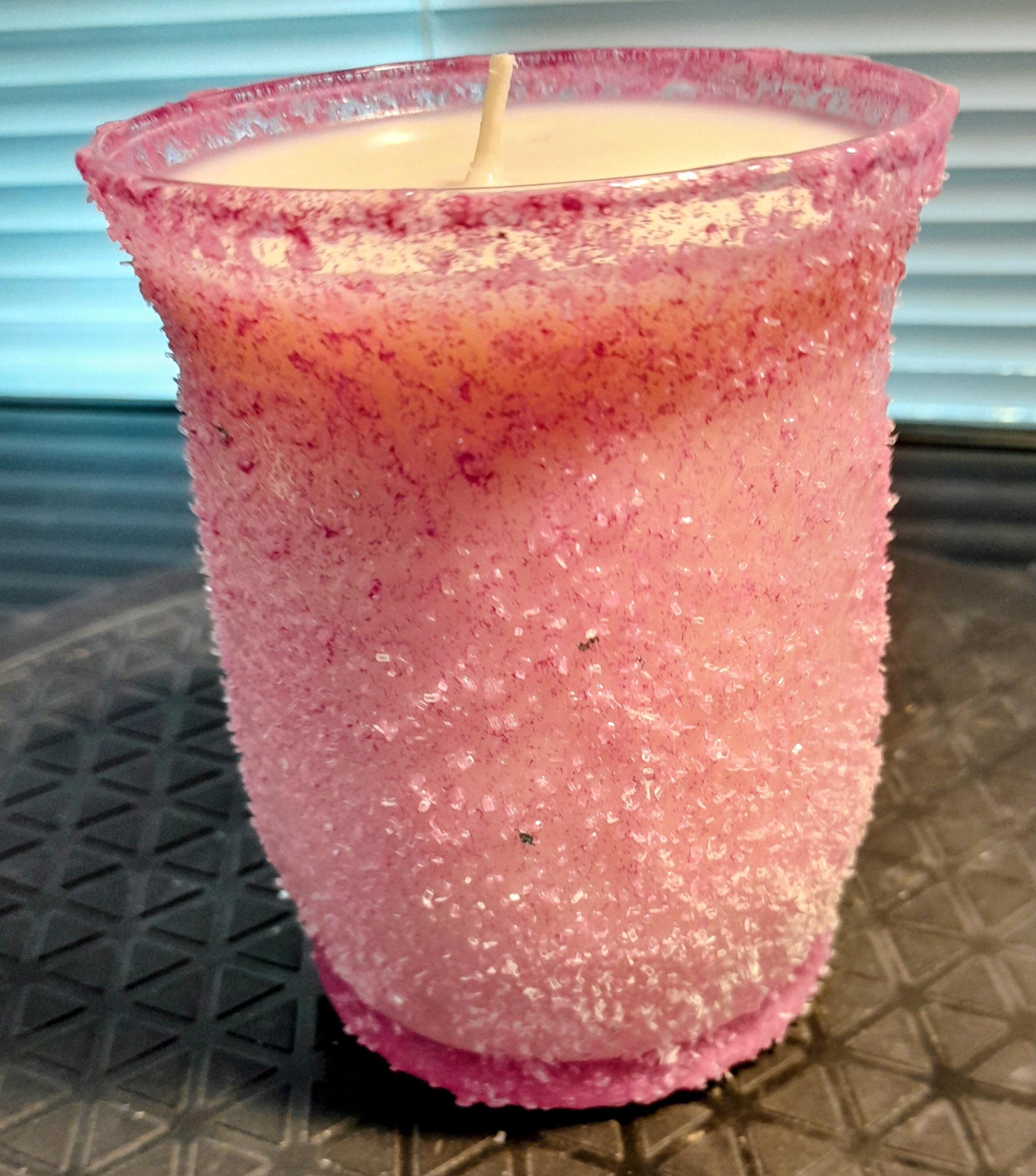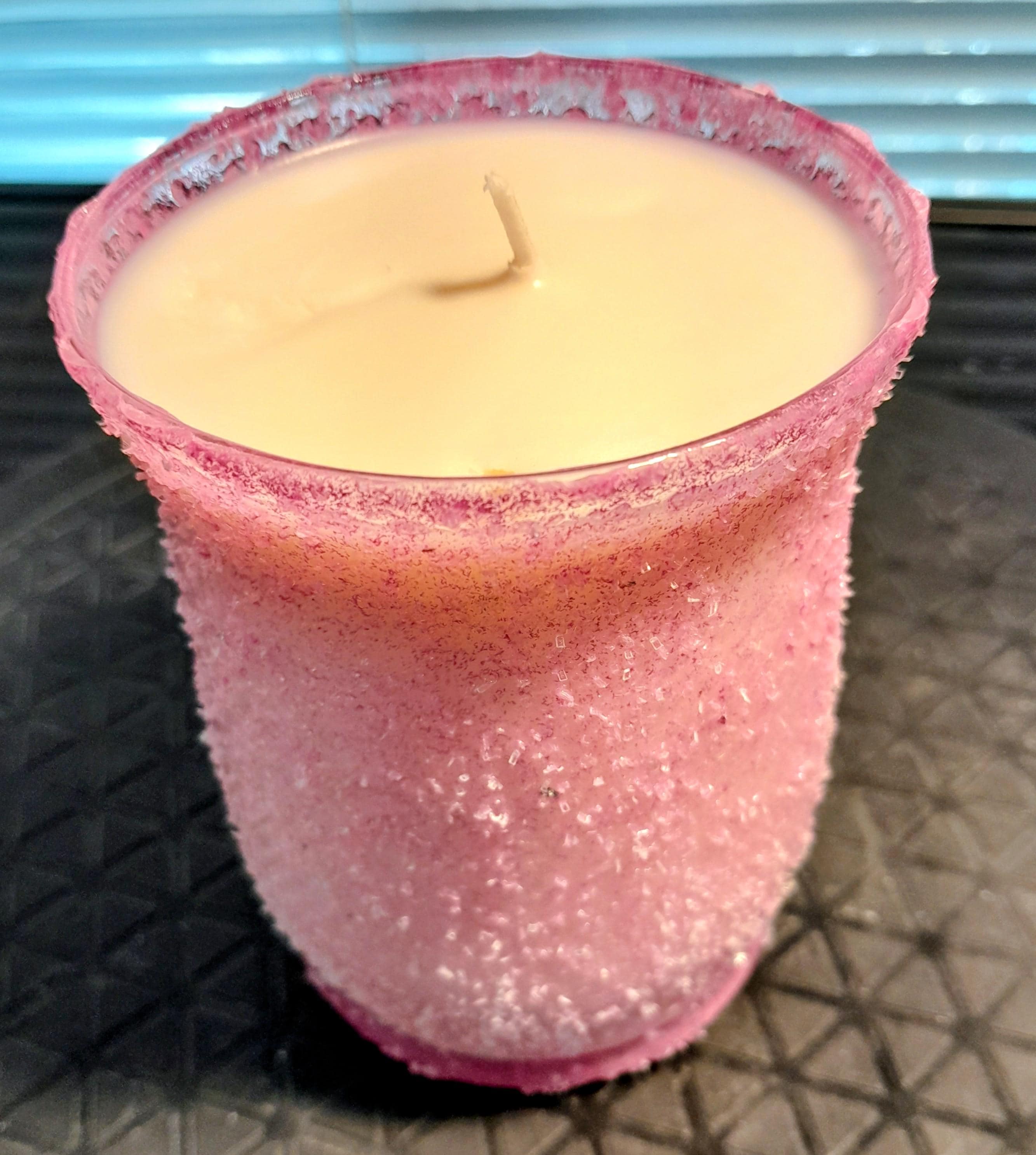 16oz Soy Candle Vanilla Scented. Beautiful handmade, with a colorful acrylic sparkle design