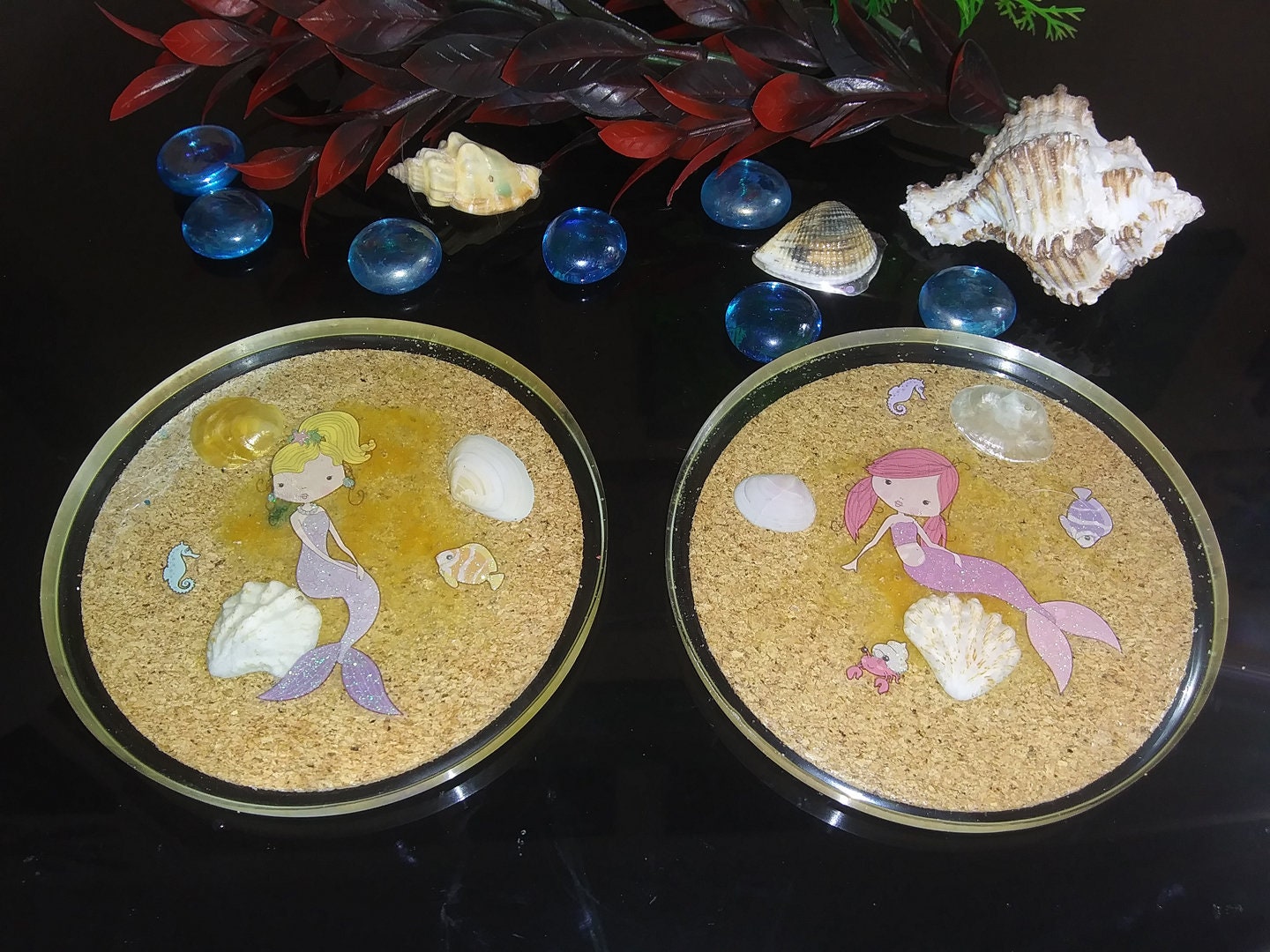 Seashell & Mermaid Coaster Set- Clear Acrylic