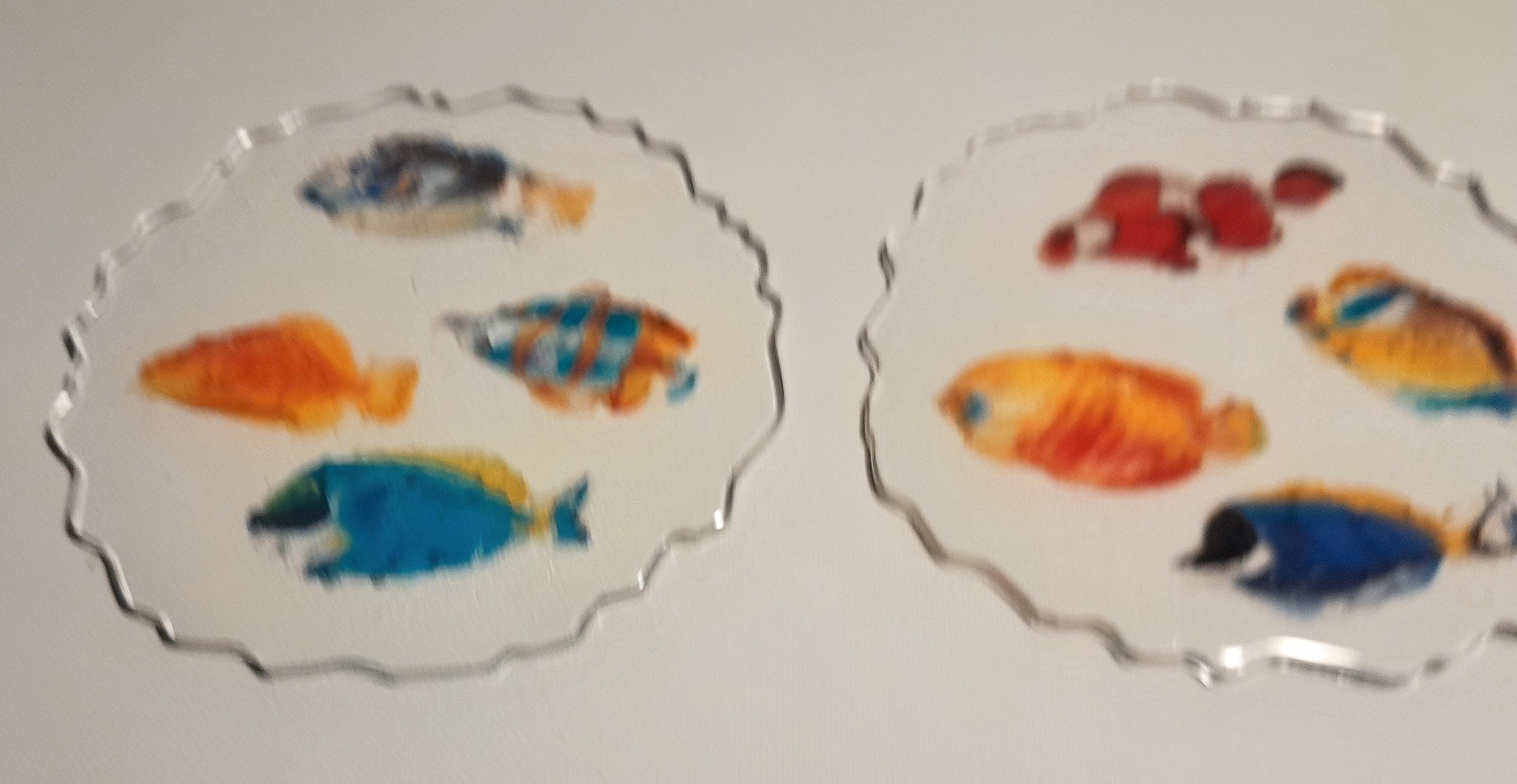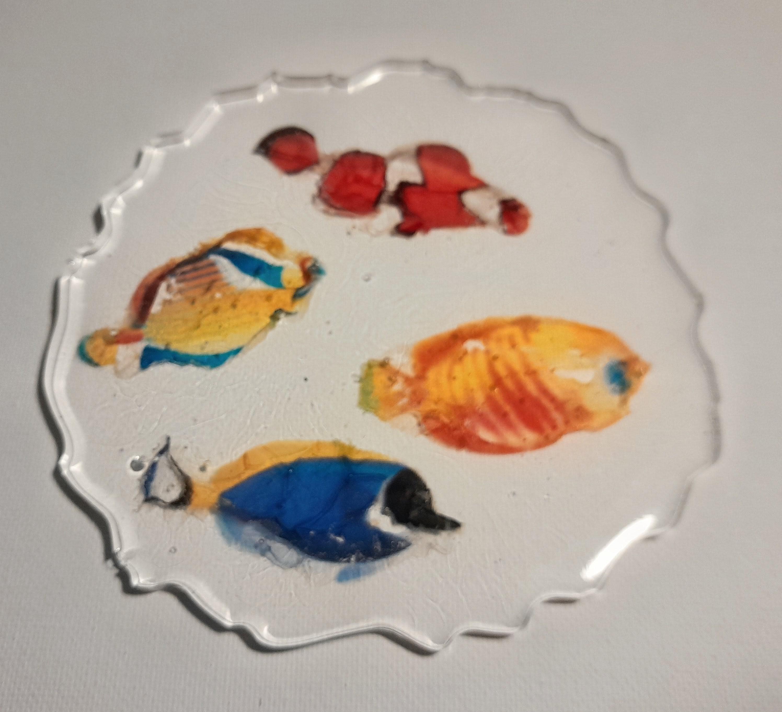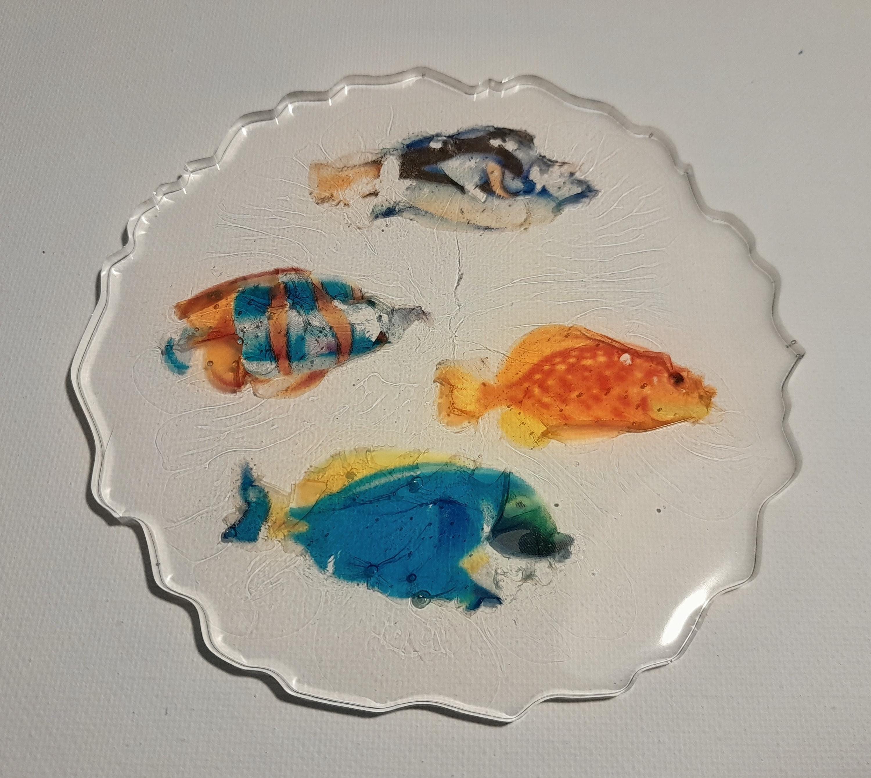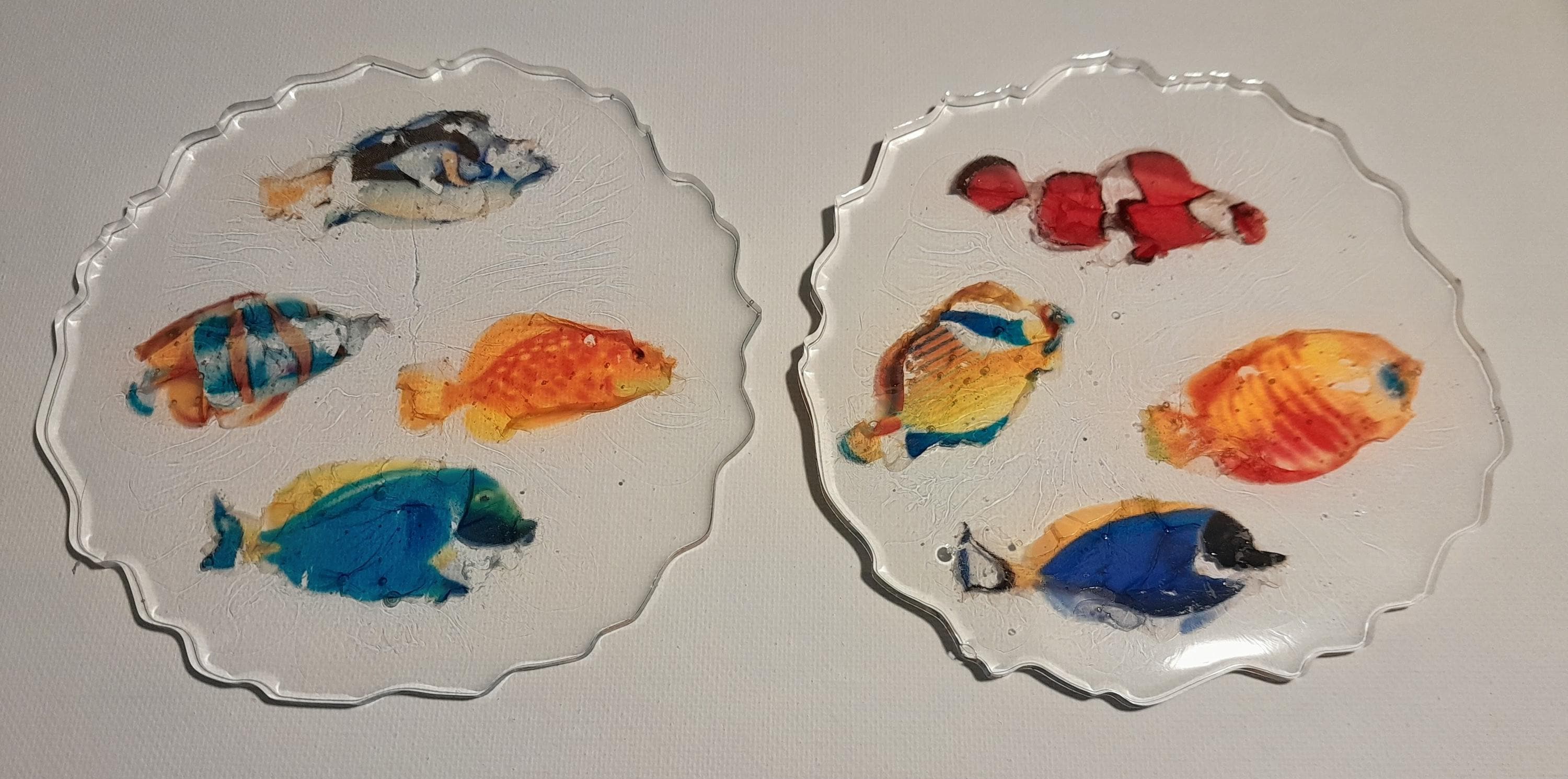 Two Clear Resin Coasters with Decorative Tropical Fish