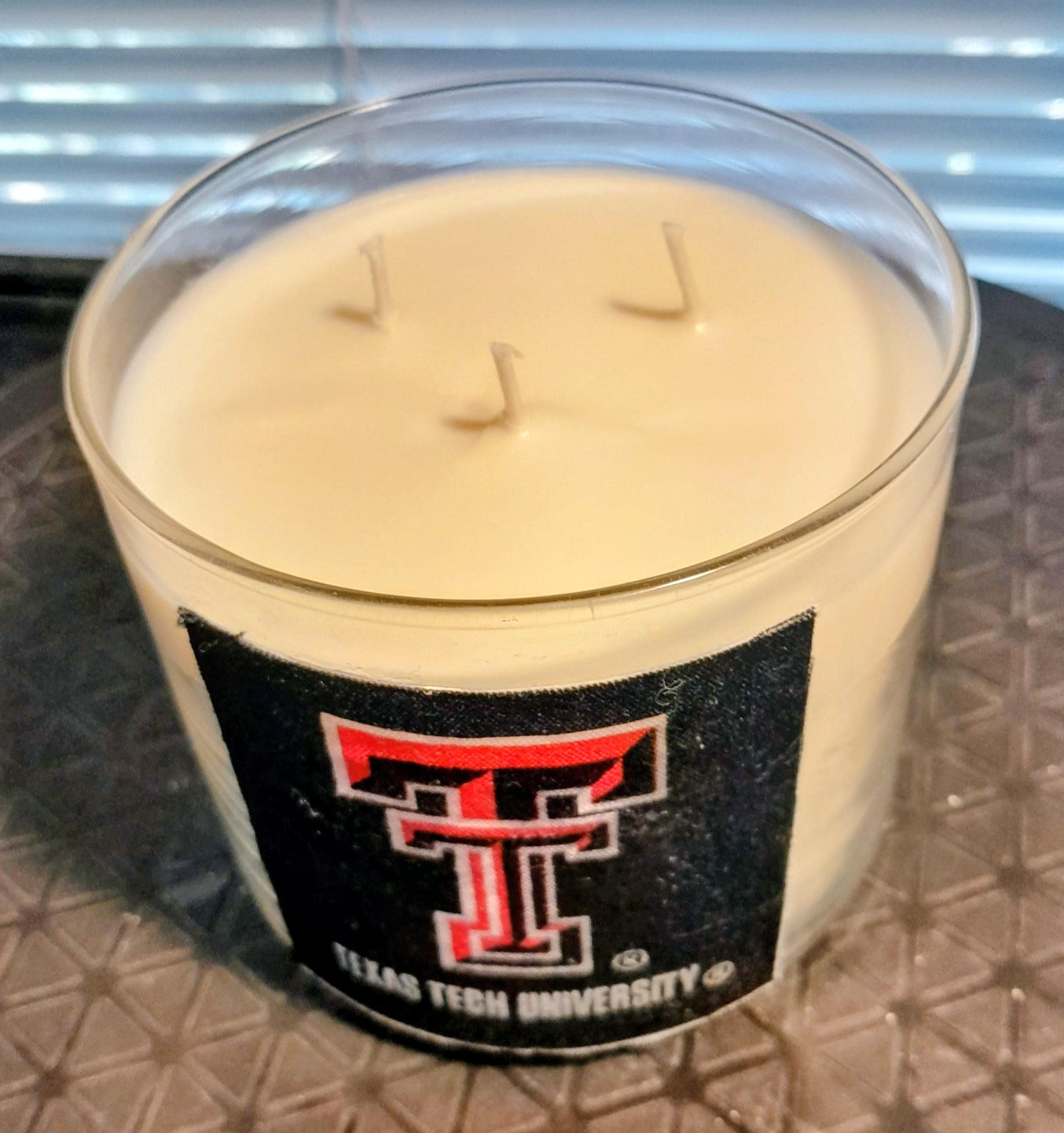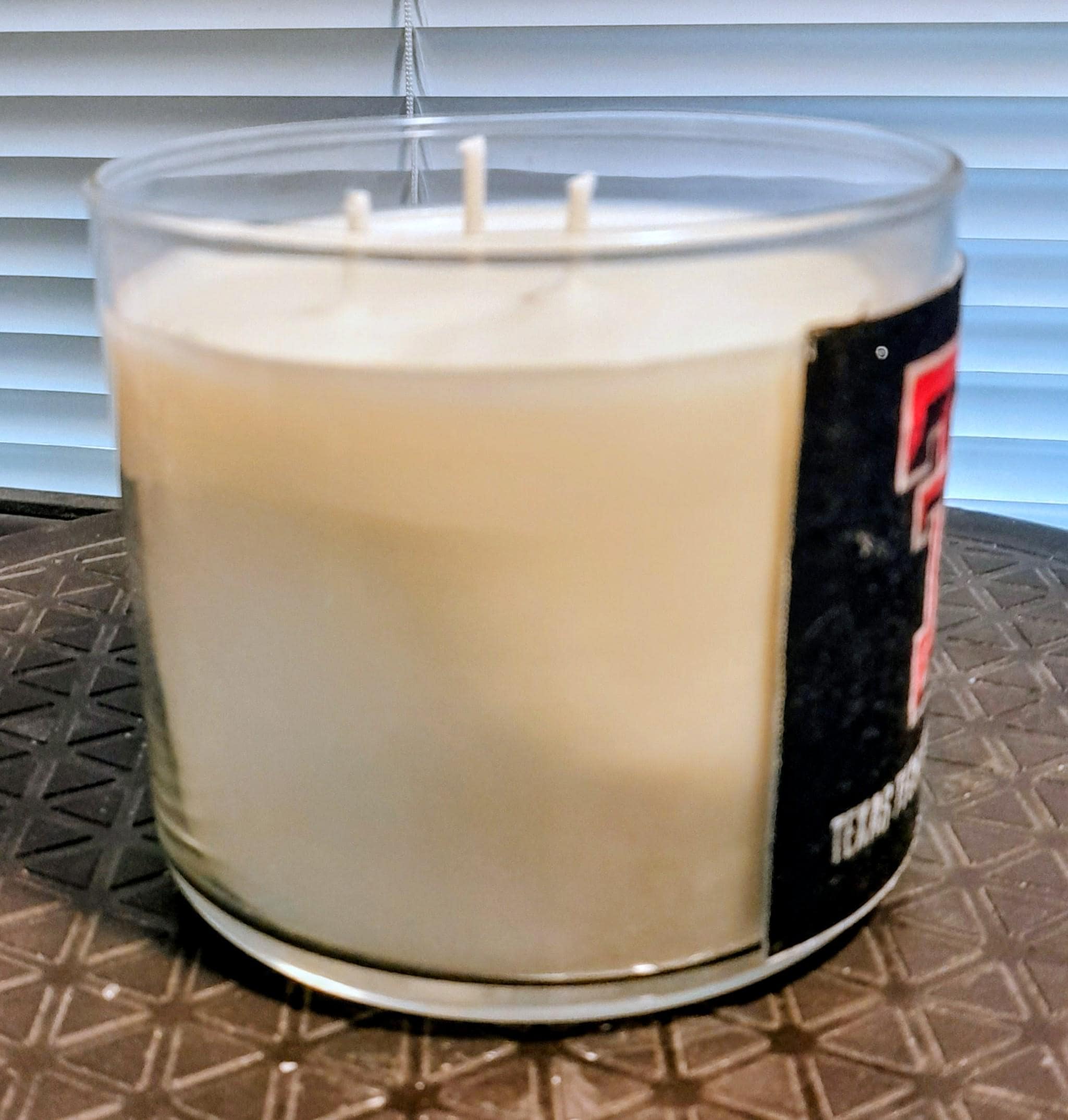 24oz Soy Candle Vanilla Scented. Beautiful, handmade, with Texas Tech design