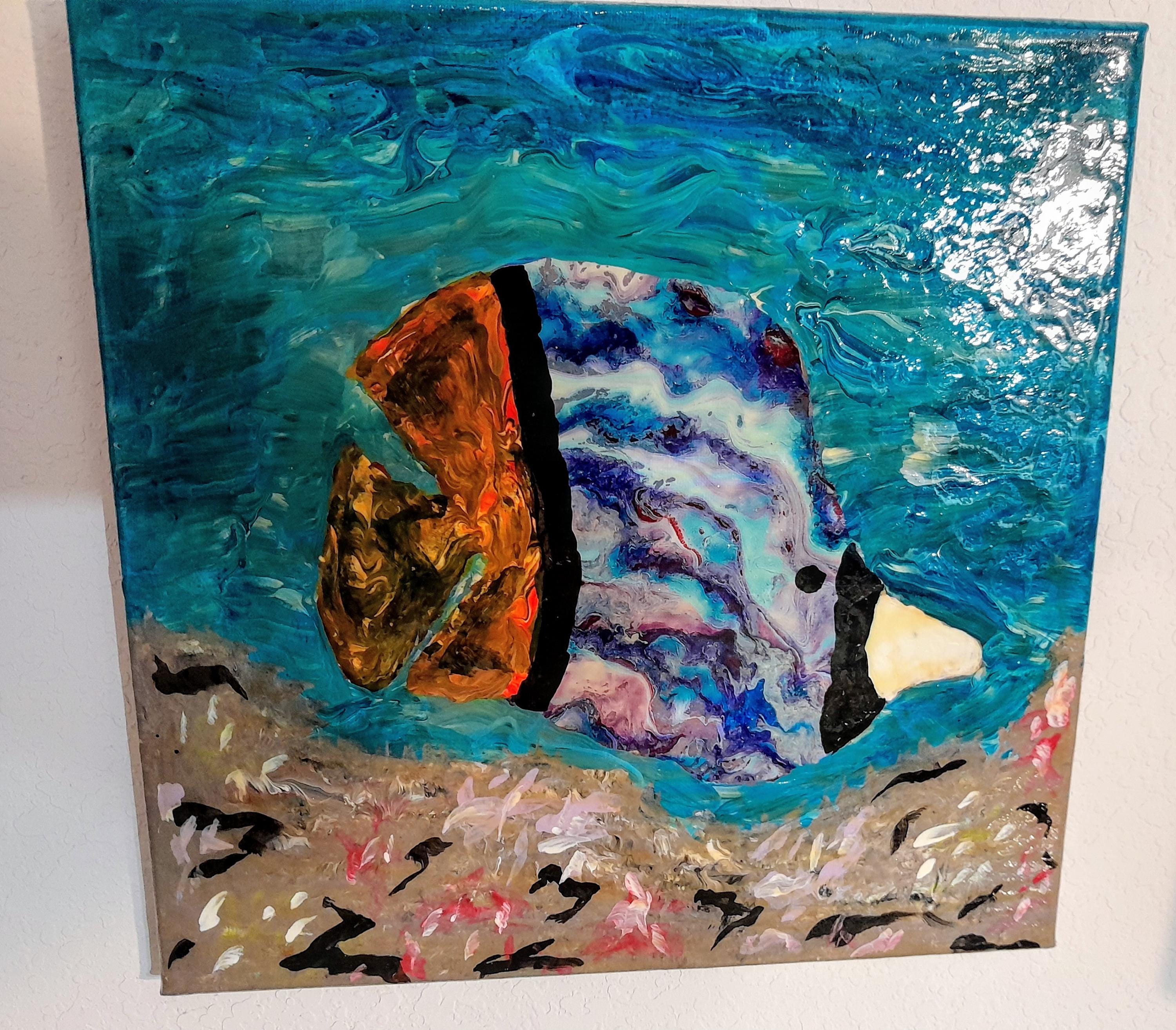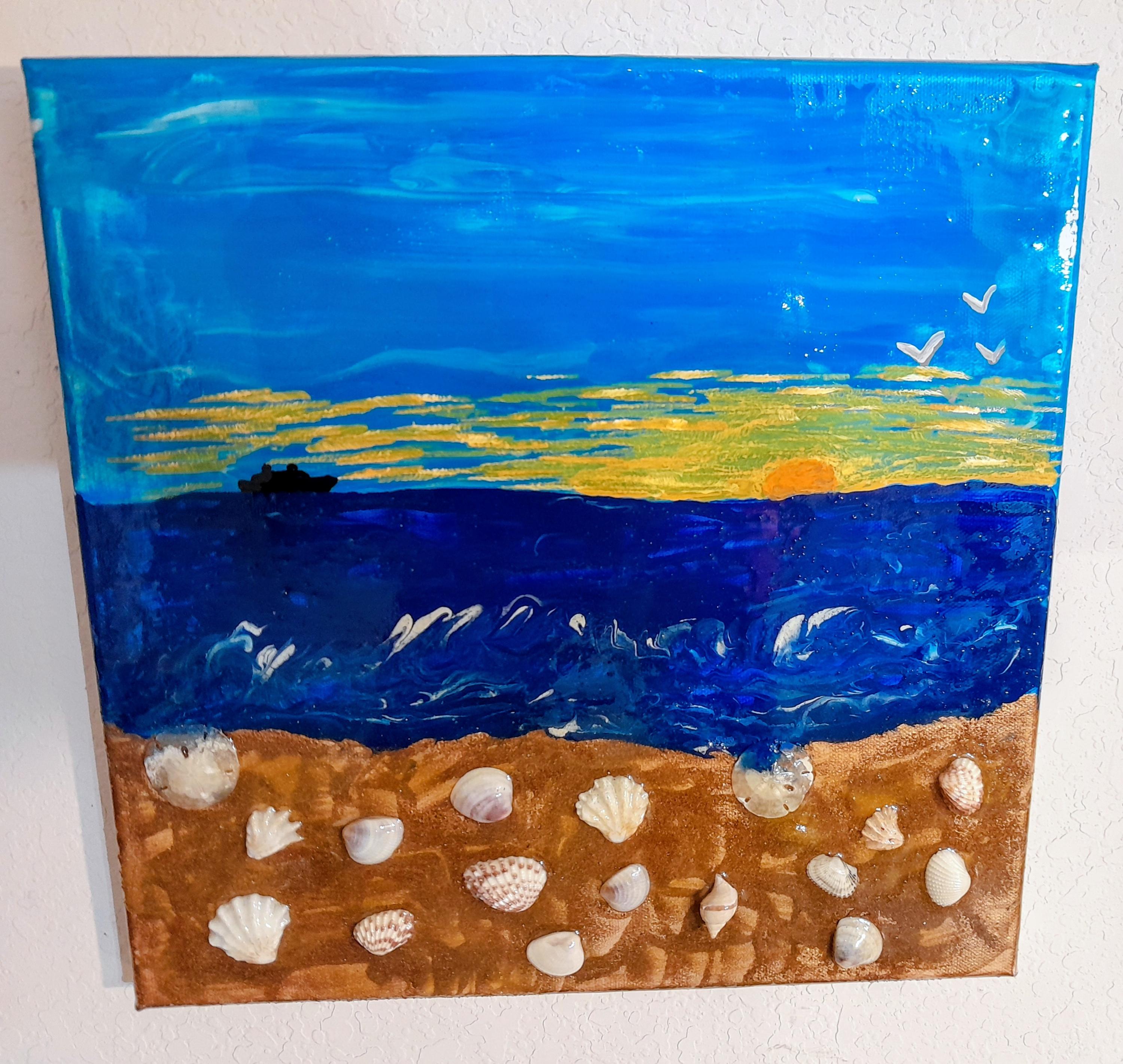Original Acrylic Contemporary Paintings - Beach with Shells and Fish